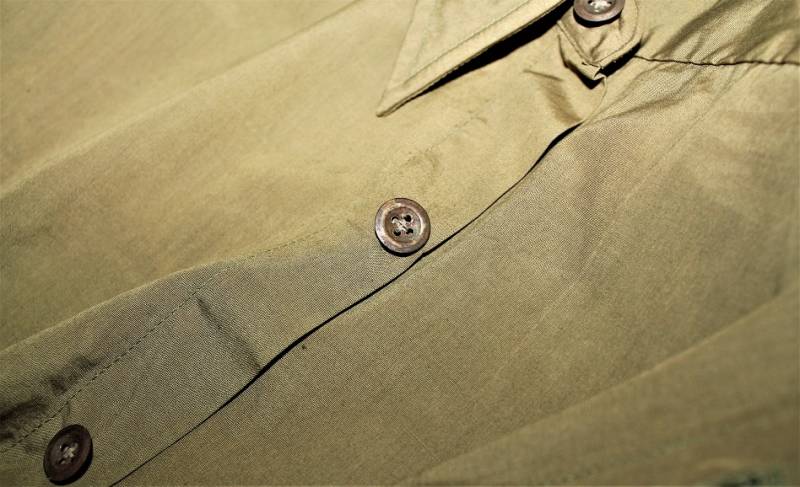 Camicia in cotone per reparti SA o NSKK in perfette condizioni, nuova di magazzino forse mai indossata, sul colletto etichetta con il nome del soldato, taglia circa 50. Originale 100% WWII periodo.