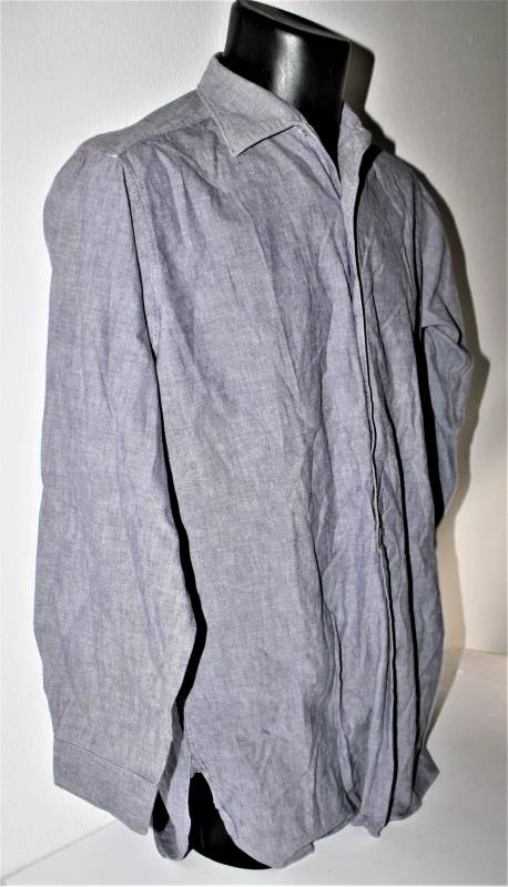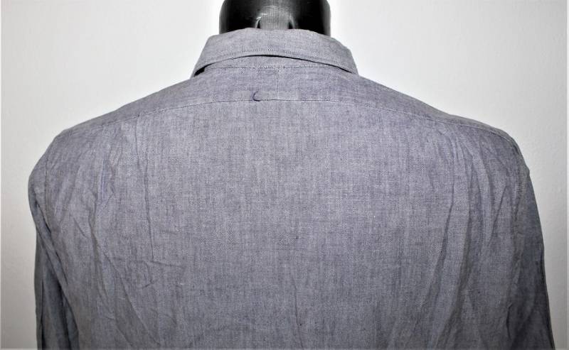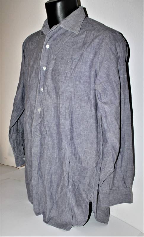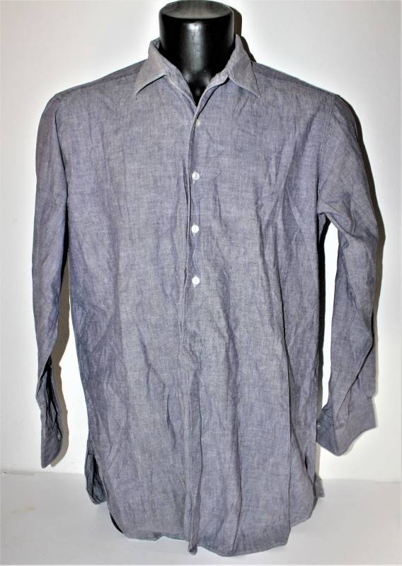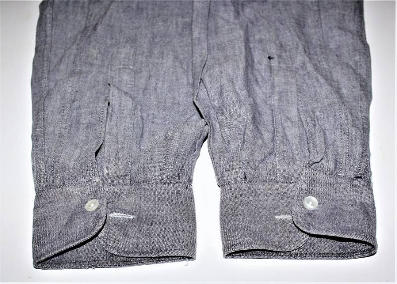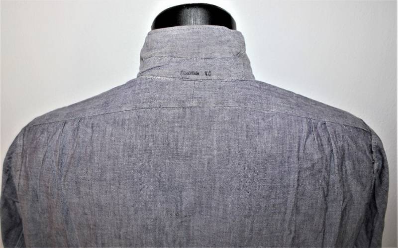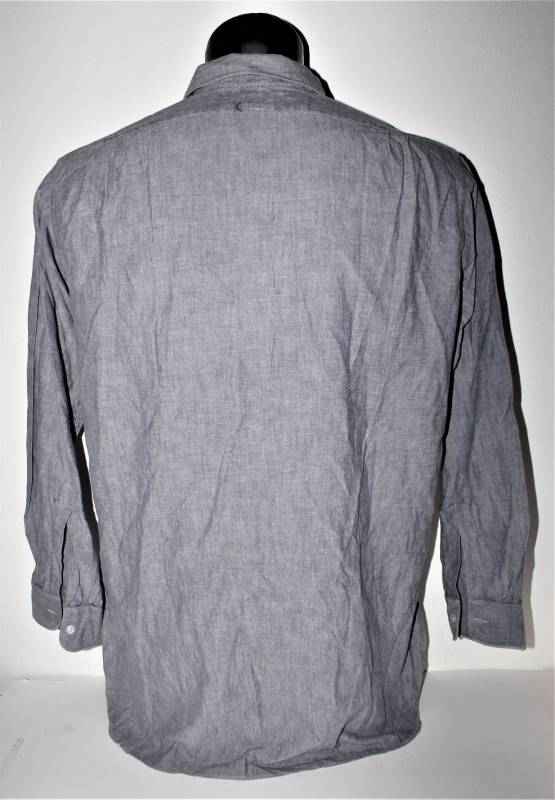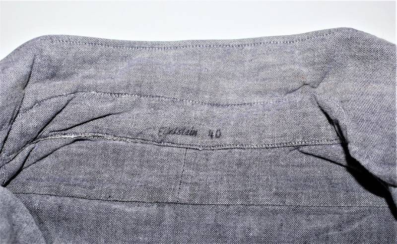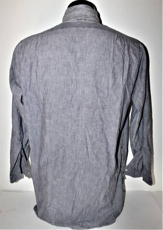 Camicia di servizio della Luftwaffe modello a manica lunga, nata in cotone blu LW, condizioni ottime, quasi pari al nuovo, senza buchi strappi o riparazioni. Marcata con fabbricante e taglia (taglia grande). Originale 100% WWII periodo.