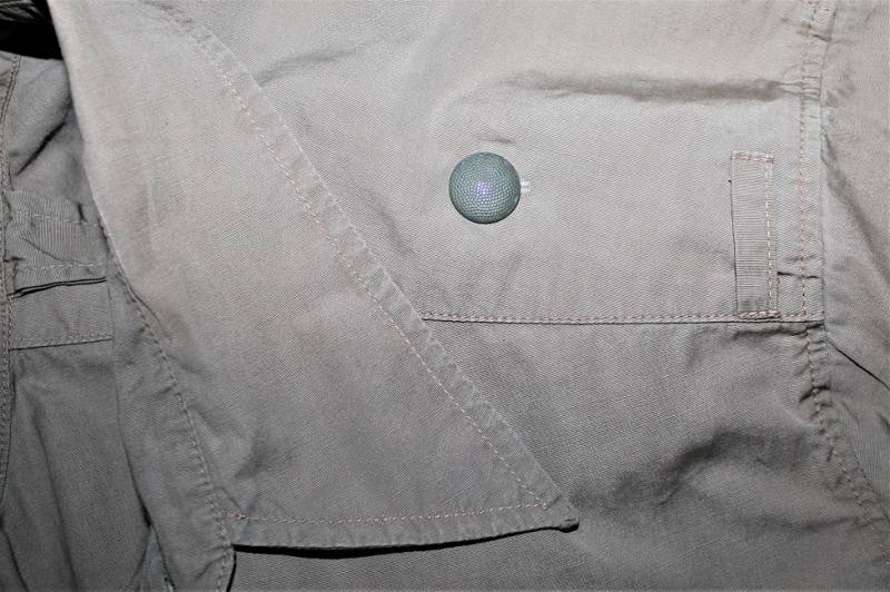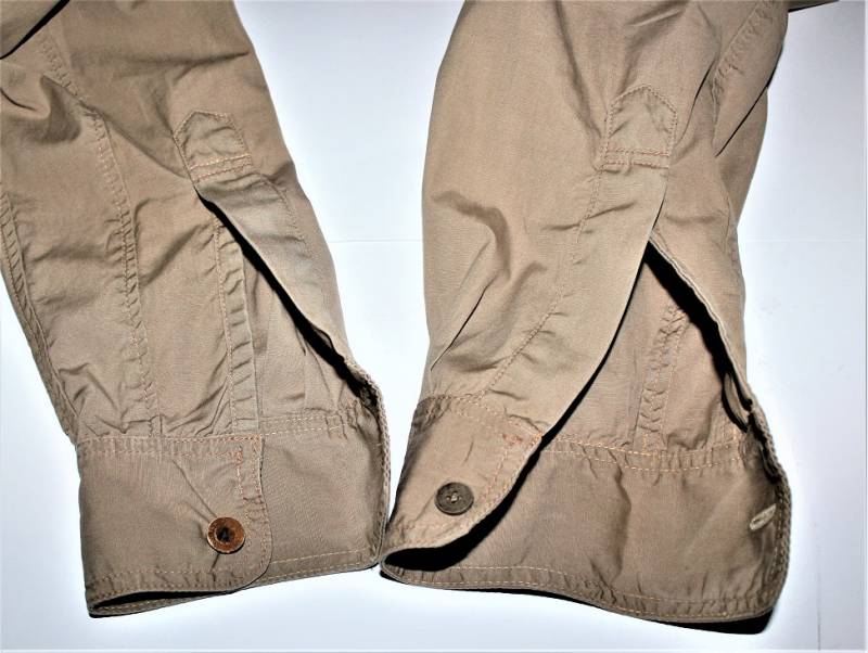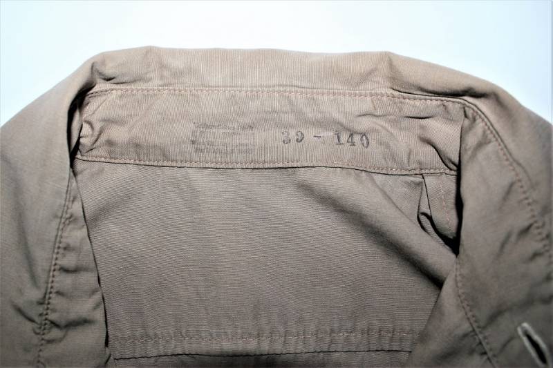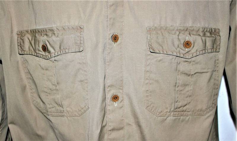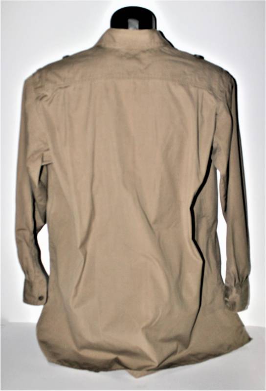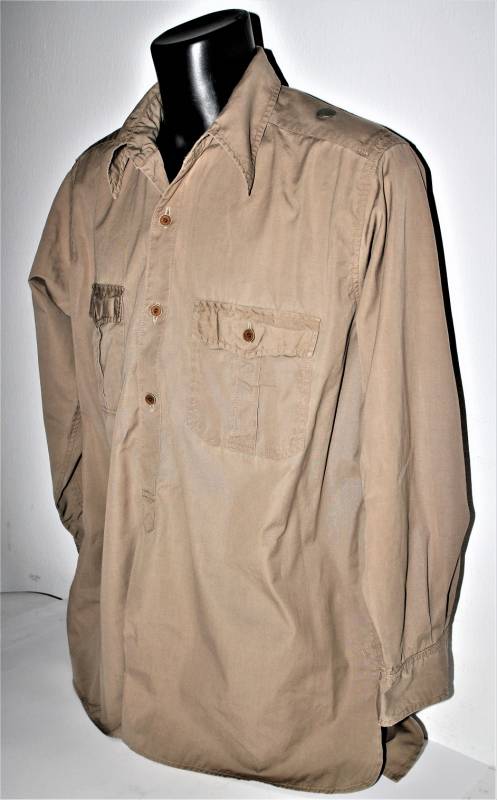 Stupenda camicia tropicale DAK WH-LW-SS nata in cotone in colorazione grigio-beige, condizioni perfette pari al nuovo, mai usata fondo di magazzino, completa di bottoni per spalline, marcata con nome del fabbricante e numeri taglia. Taglia grande circa 52. Originale 100% WWII periodo.