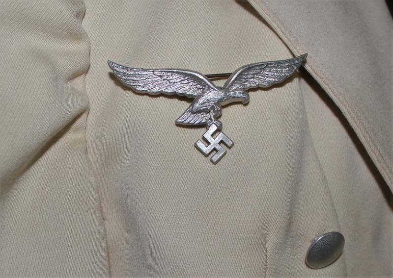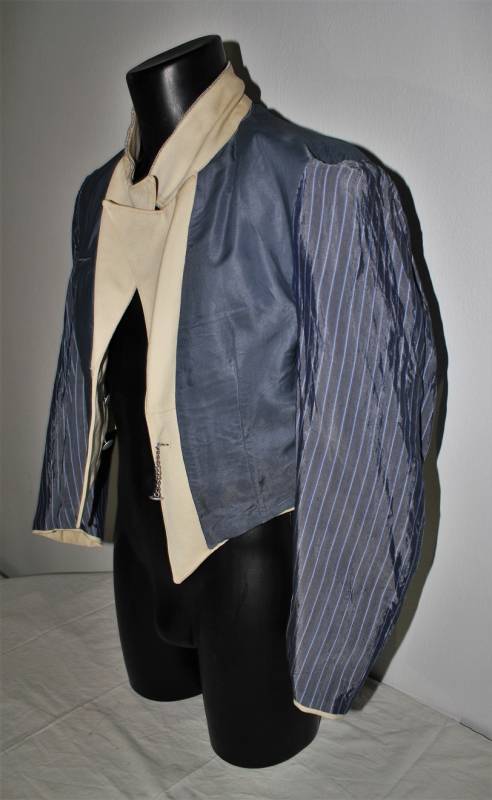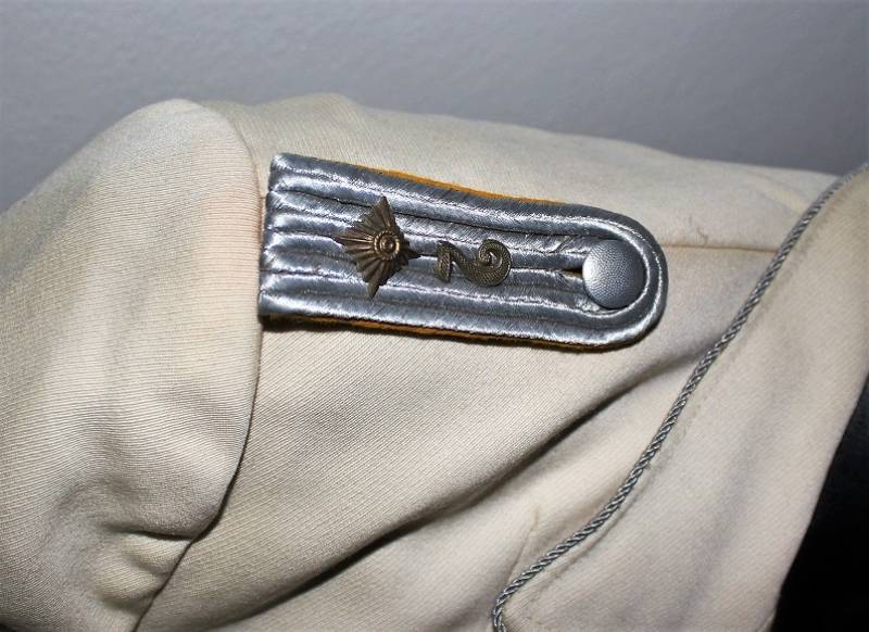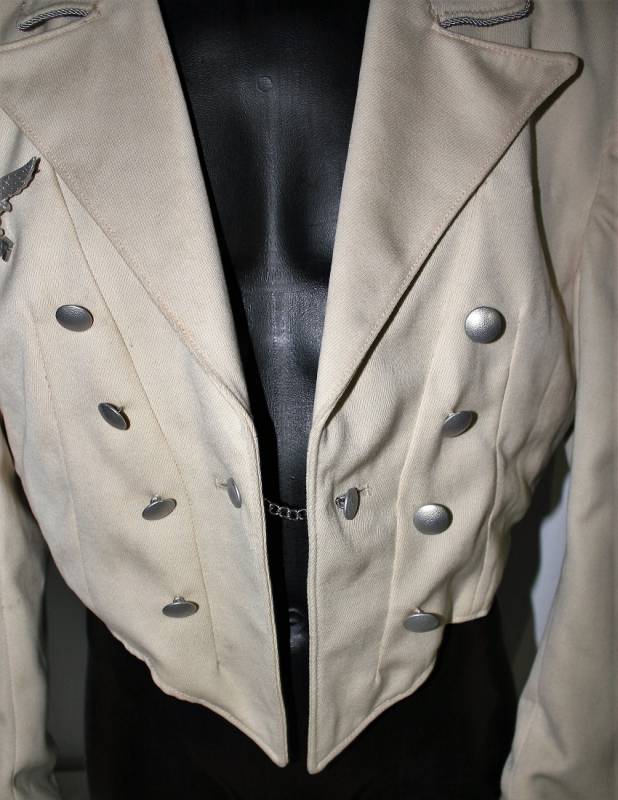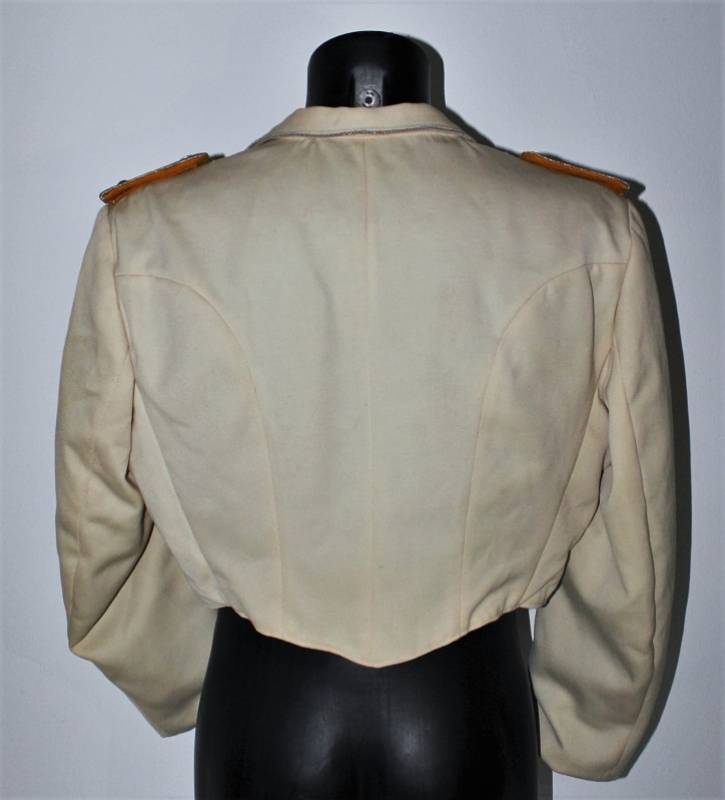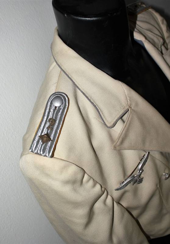 Giacchino LW bianco da sera e da gala in ottime condizioni, leggerissimi segni del tempo e dellŽuso, senza buchi, strappi o riparazioni, nato in gabardina diagonale colore bianco panna, allŽinterno sulla fodera è stata tolta lŽetichetta della sartoria, completo di tutta la sua mostreggiatura originale dŽepoca. Taglia circa 48. Originale 100% WWII periodo.