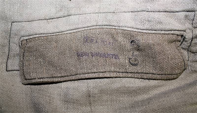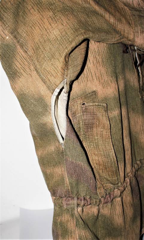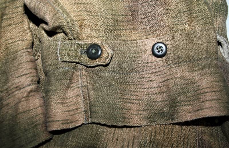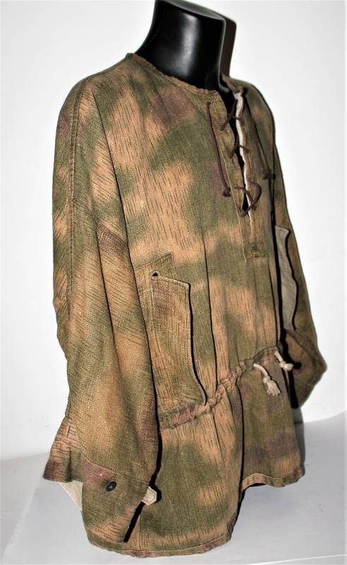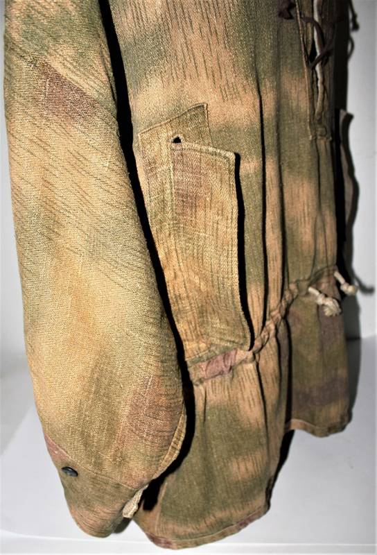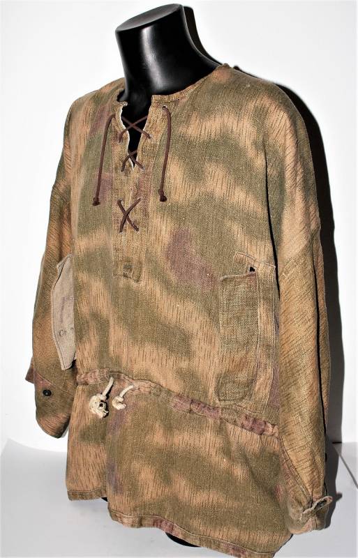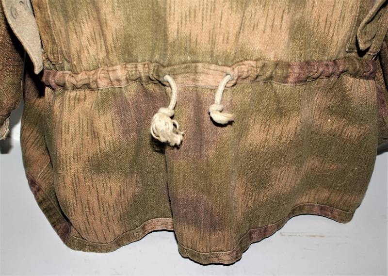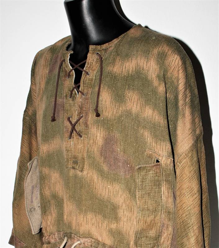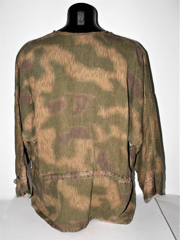 Spolverina mimetica Luftwaffe M43 in stoffa drillick, in ottime condizioni, completa in ogni sua parte, non restaurata o riparata, con leggerissimi segni del tempo e dellŽuso, quasi pari al nuovo, marcata con RBN N..., taglia G2 e L.B.N.43. Originale 100% WWII periodo.
