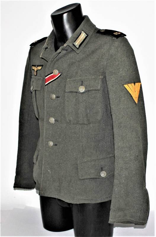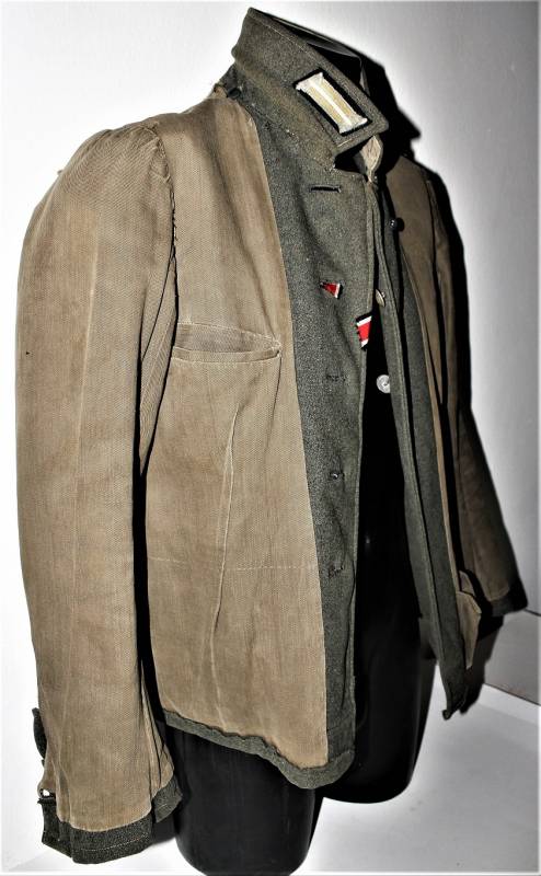Giacca da truppa M40 KM Artiglieria Costiera, molto usata ma ancora in buone condizioni, qualche piccolo buchino, mostreggiata dŽepoca e completa in ogni sua parte, leggermente accorciata di circa 5cm in epoca. Marcata con codice Kriegsmarine e data 1941. Originale 100% WWII periodo.