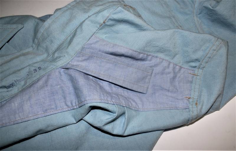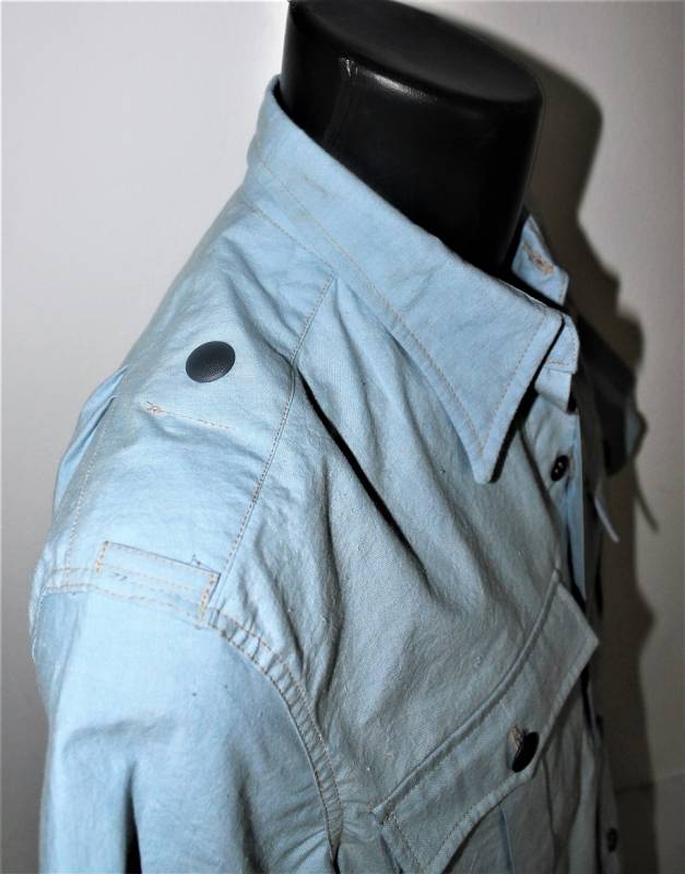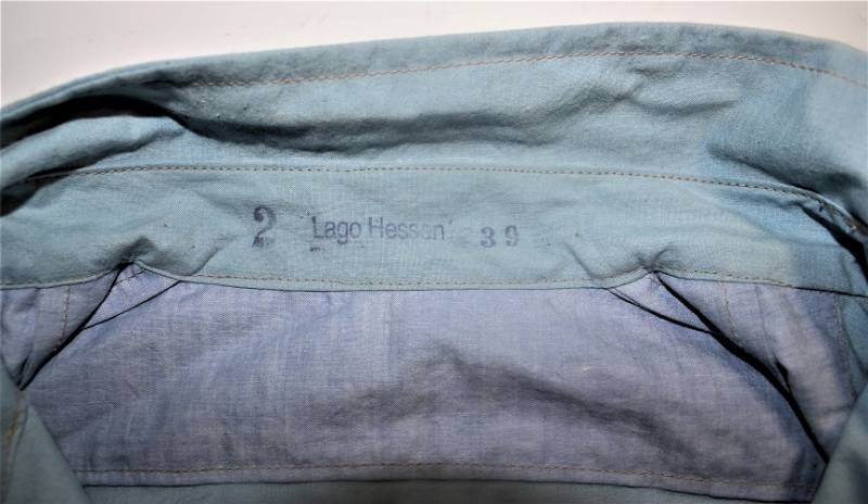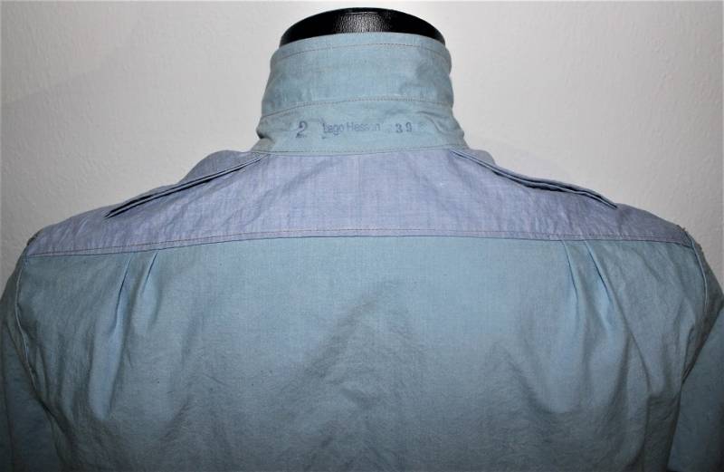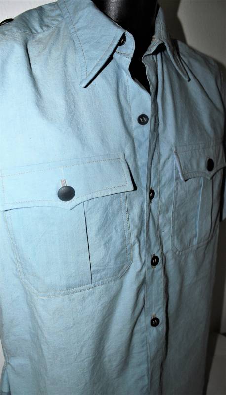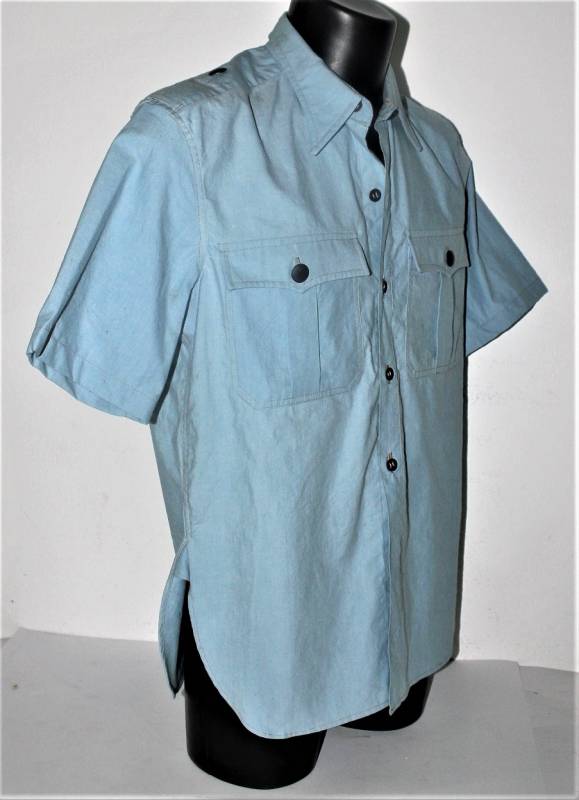 Camicia di servizio della Luftwaffe modello a manica corta, nata in cotone blu LW, condizioni ottime, quasi pari al nuovo, senza buchi strappi o riparazioni. Marcata con logo fabbricante, data e taglia (taglia media) Originale 100% WWII periodo.