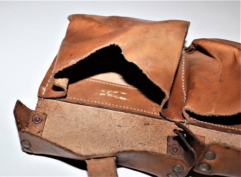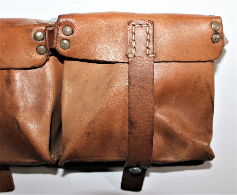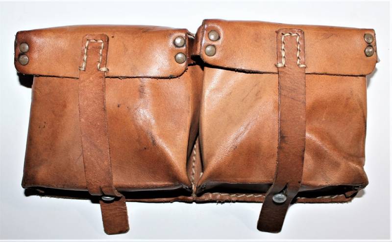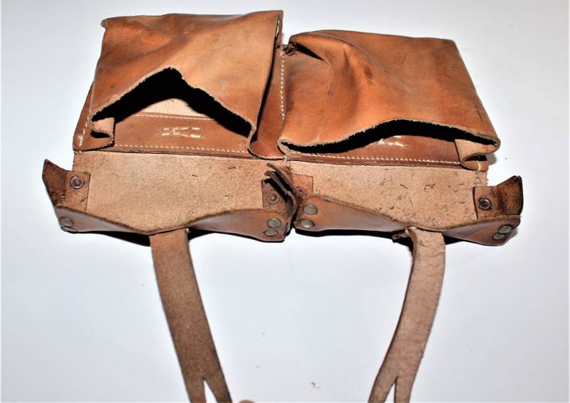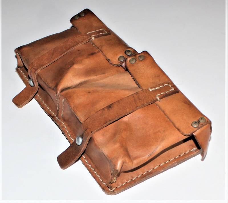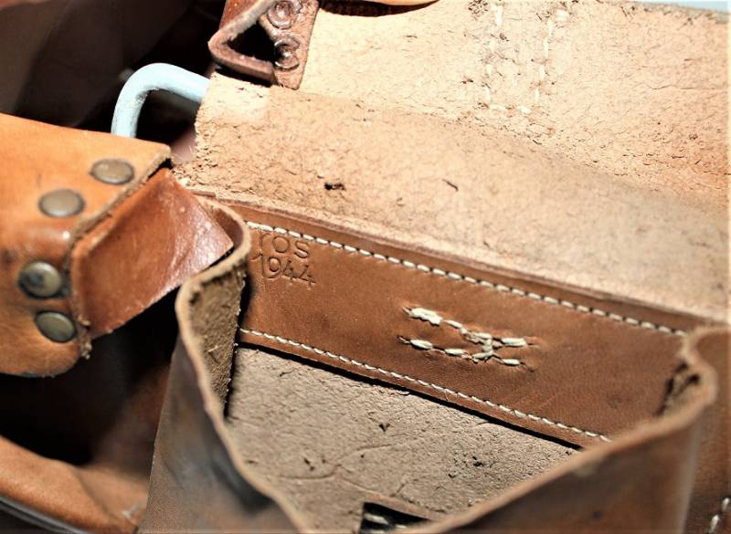 Coppia di porta caricatori per carabina K43-G43, condizioni quasi perfette, mai usati, solo leggera patina del tempo, fabbricazione in pelle marrone fine guerra, marcati internamente con codice fabbricante e data 1944. Originale 100% WWII periodo.