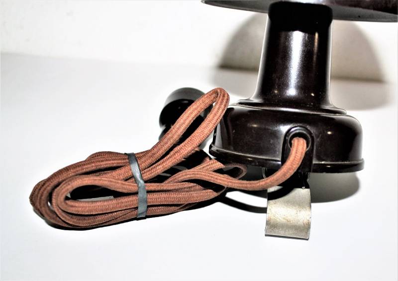 Stupenda lampada da ufficio in bakelite rossa in ottime condizioni, quasi pari al nuvo, completa in ogni sua parte, bakelite perfetta non lesionata, perfettamente funzionante, marcata con marchi del fabbricante, voltaggio e numero di serie, sulla base attacco in metallo per tavolo. Dimensioni piccole (circa 14x11 cm). Originale 100% WWII periodo.