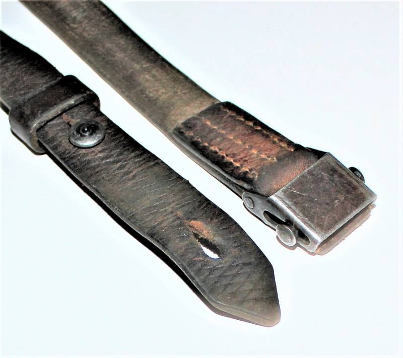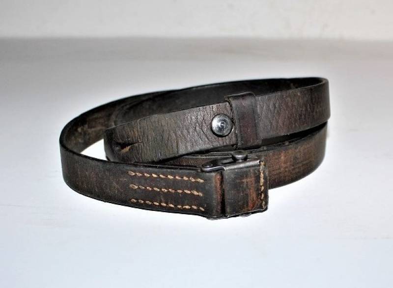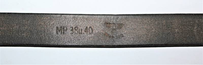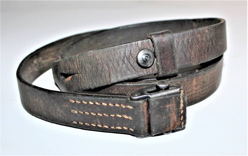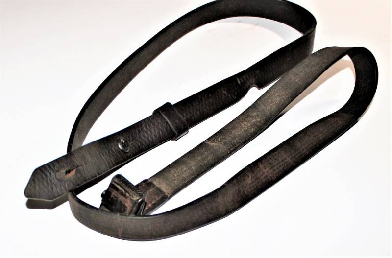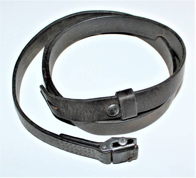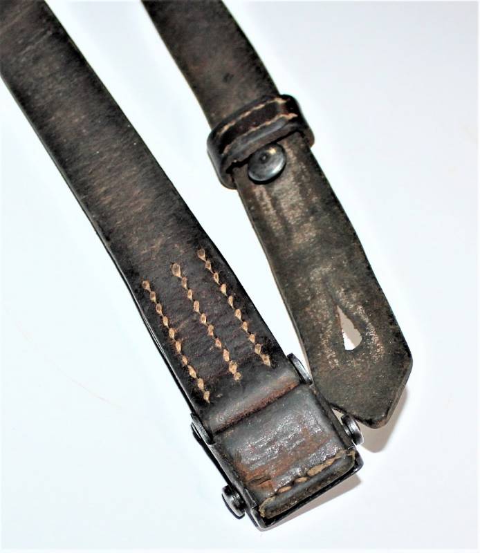 Cinghia di trasporto per pistola mitragliatrice MP38-40 condizioni buone, completa in ogni sua parte, con patina del tempo e dellŽuso, pelle ancora morbida, solo piccola lesione vivino alle asole (vedi foto), cuciture perfette, marcata con dicitura MP38 u40 e waffenamt. Originale 100% WWII periodo.