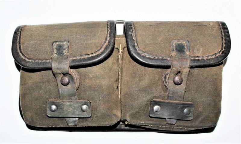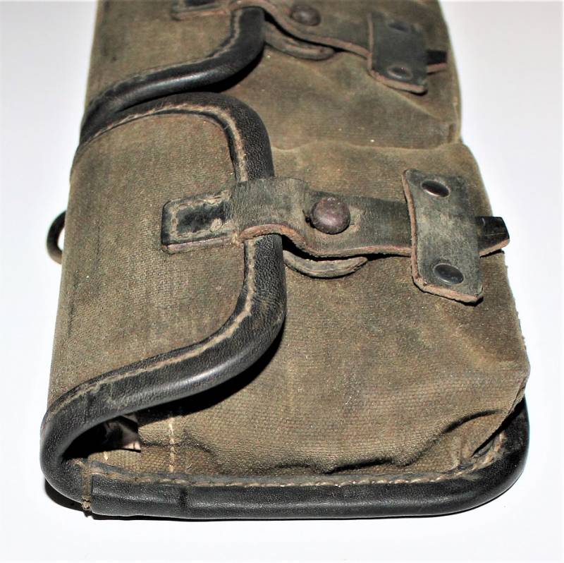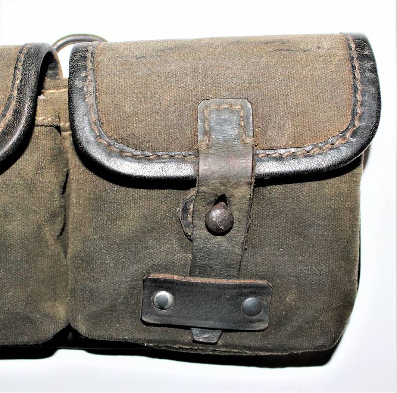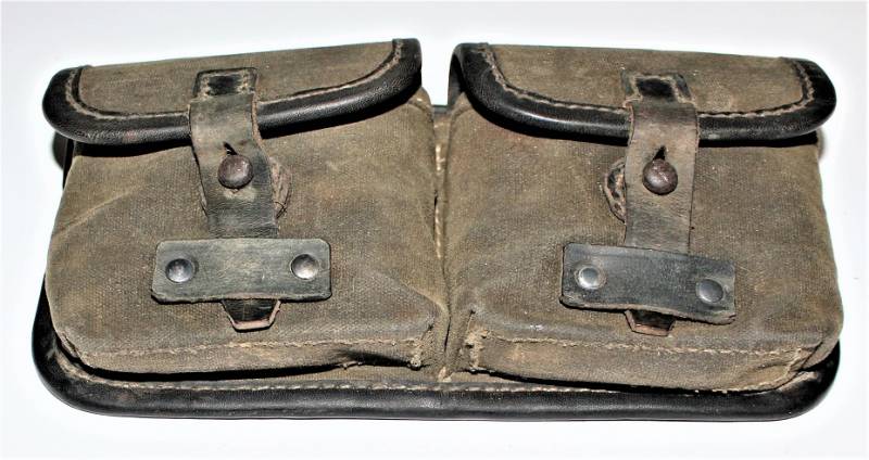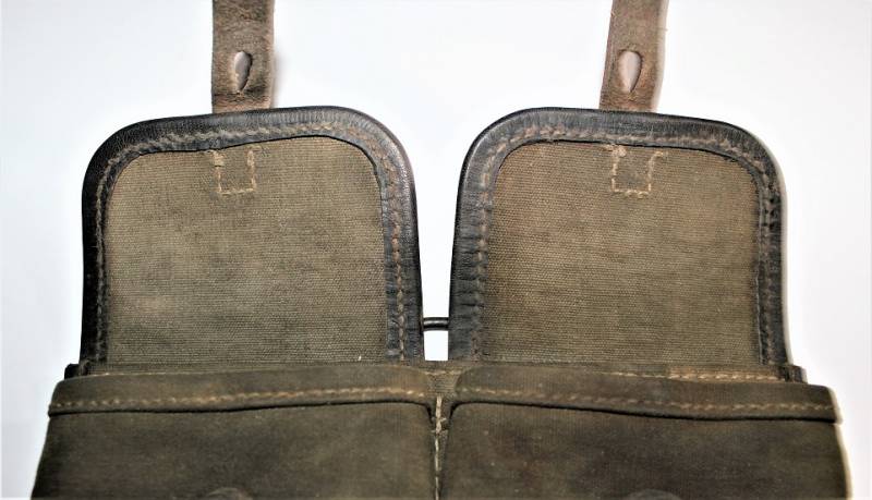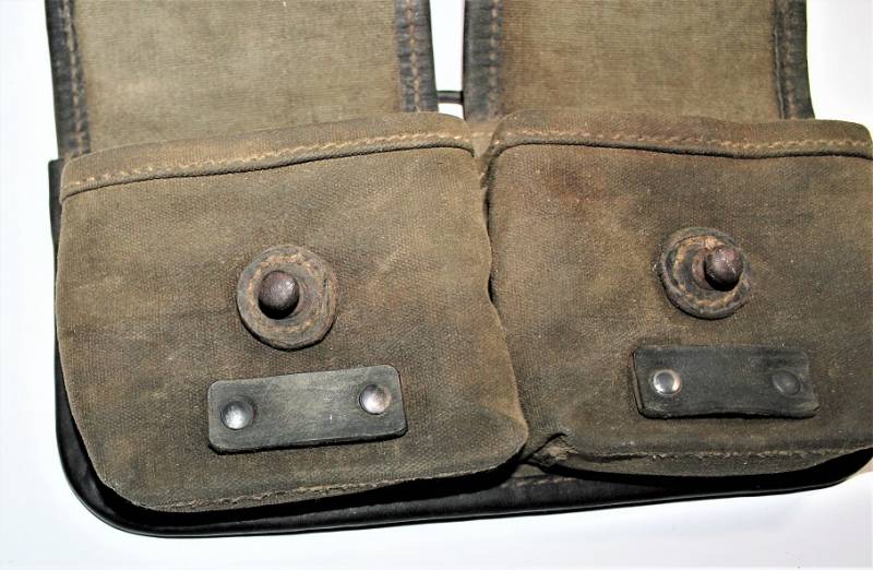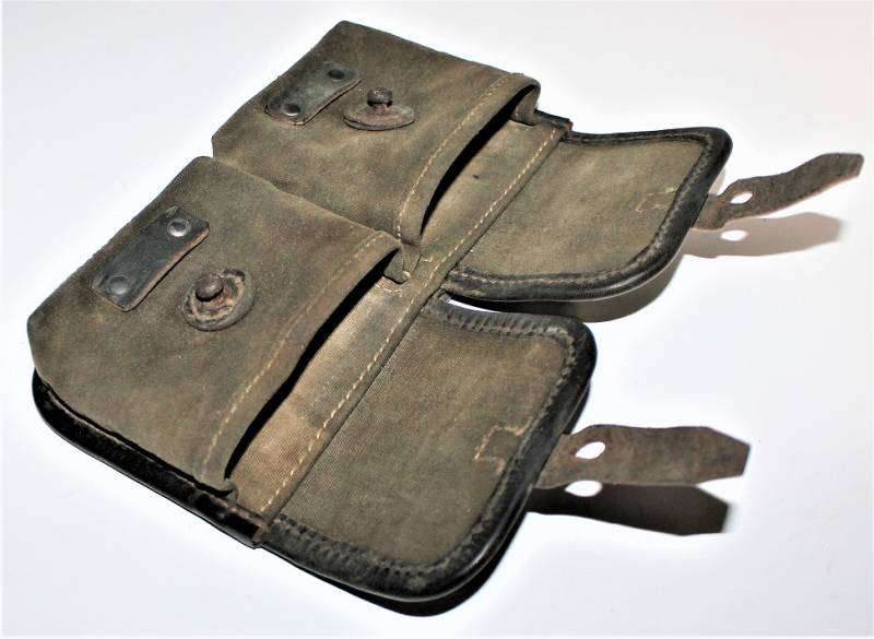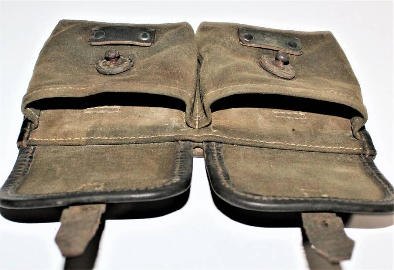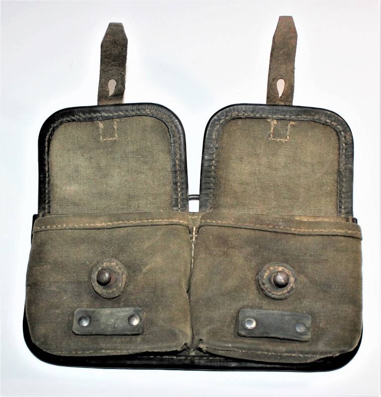 Porta caricatori modello tela e pelle per fucile semi automatico K43 G43 in buone condizioni, pelle e tela non lesionata, cuciture perfette, non restaurati o riparati, con patina del tempo e dellŽuso, marcati con codice fabbricante, data 1944 e RBN n... Originale 100% WWII periodo.