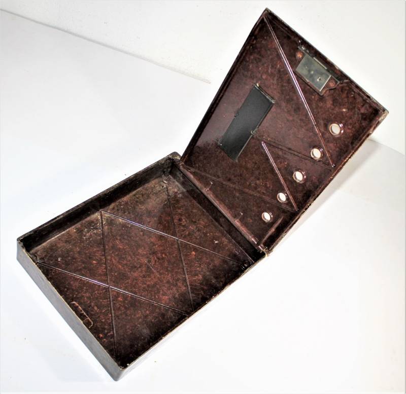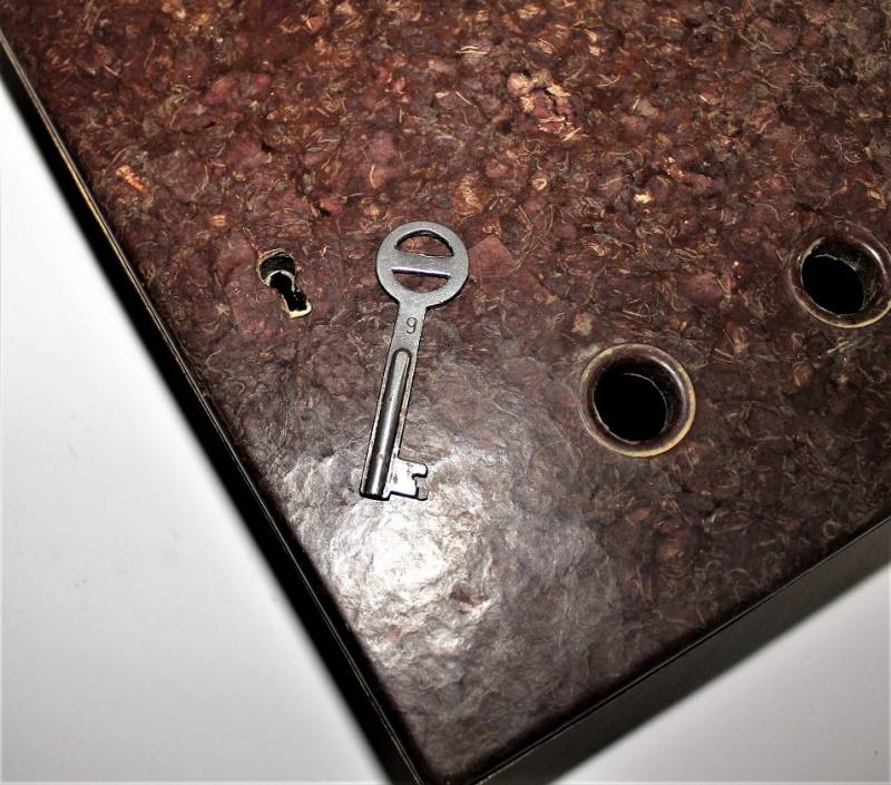 Cassetta per posta in bakelite marrone-rossa in perfette condizioni, non lesionata, non restaurata o riparata solo con una leggera patina del tempo e dellŽuso e completa della sua chiave.