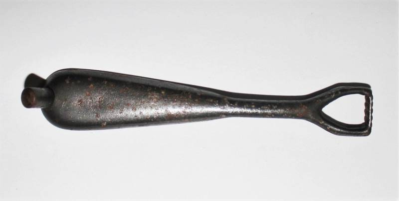 Cucchiaio-chiavetta, in dotazione al kit di pulizia mod. RG34 per fucile Mauser K98, ossidazione del tempo, ma buone condizioni, marcato con codice fabbricante. Originale 100% WWII periodo.