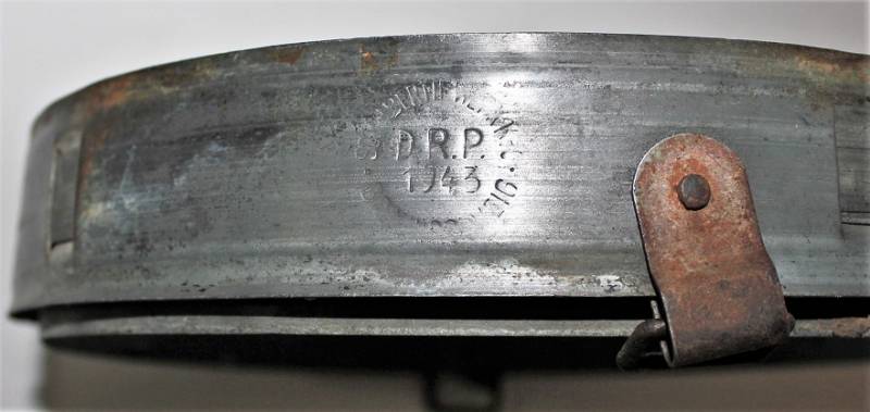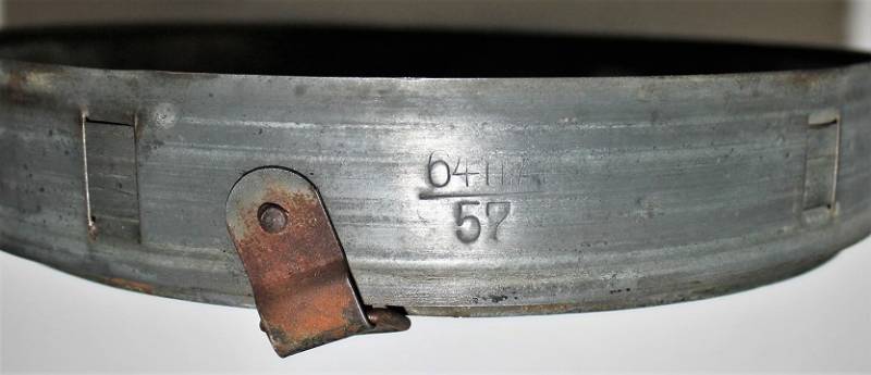Cerchione zincato per elmetto mod.40-42, completo di contro cerchione e in buono stato, taglia ferro ET64, per pelle tg.57, marcato con fabbricante e anno 1943. Originale 100% WWII periodo.