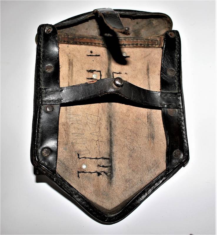 Badile pieghevole mod.38 completo della sua custodia in pelle, in ottime condizioni, con leggera patina del tempo e dellŽuso, non restaurato o riparato, custodia in pelle marcata con nome fabbricante e data 1940. Originale 100% WWII periodo.