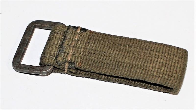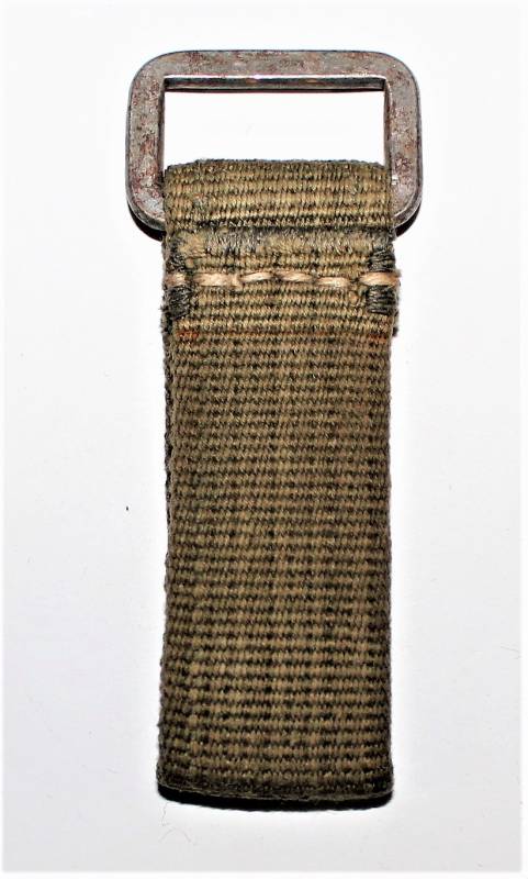 Gancio singolo da sospensione in tela tropicale D.A.K. colore giallo-verde in condizioni perfette. Originale 100% WWII periodo.