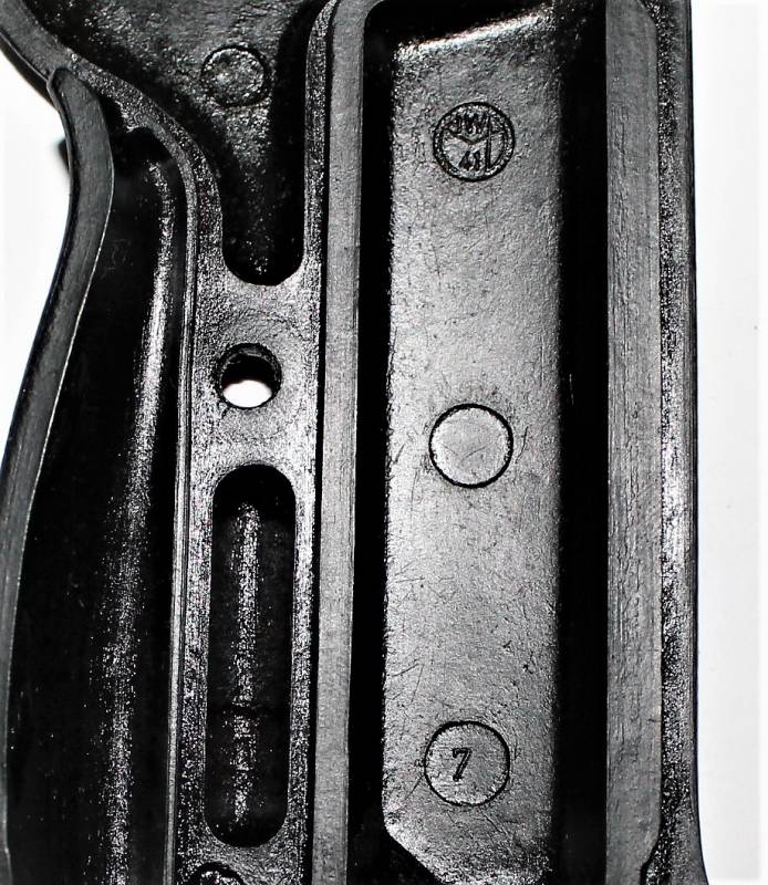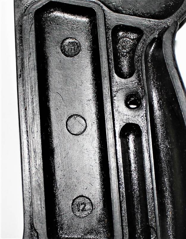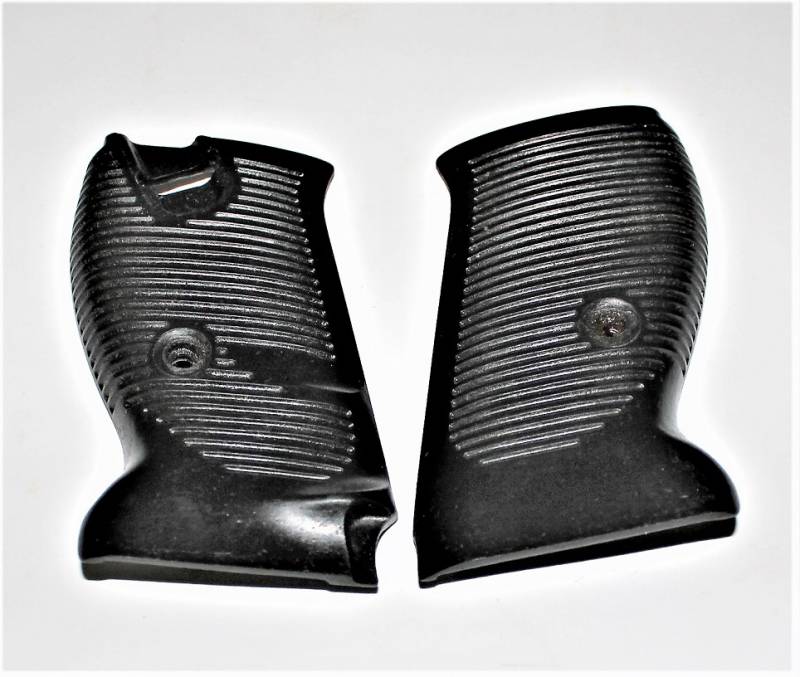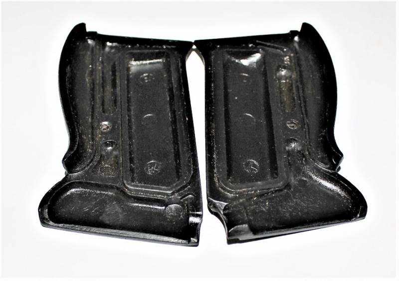 Coppia di guancette in bakelite nere per pistola Walther P38, in condizioni perfette, mai usate, marcate internamente con codice. Originale 100% WWII periodo.