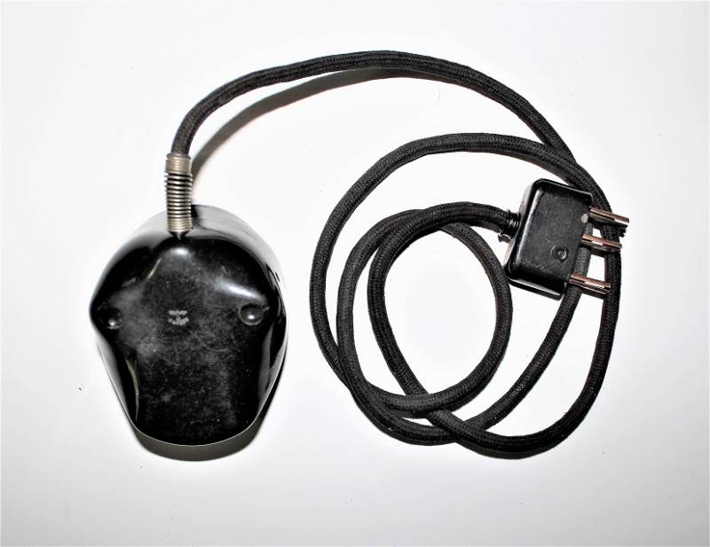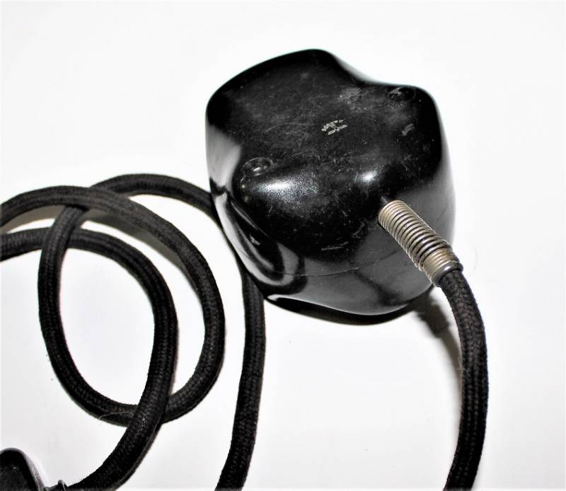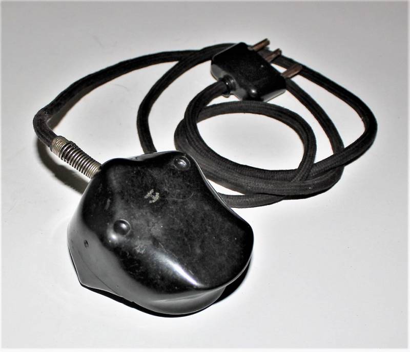 Microfono di servizio in bakelite marrone per carro in condizioni perfette, mai usato, fondo di magazzino, completo di cavetto e spinotto, marcato con waffenamnt. Originale 100% WWII periodo.