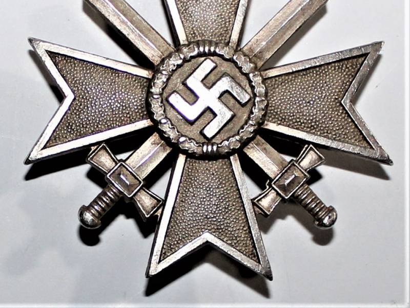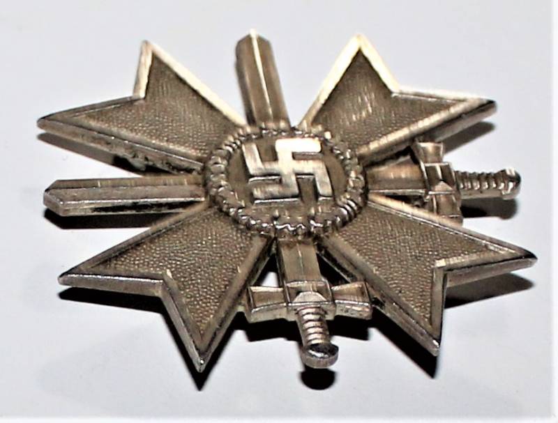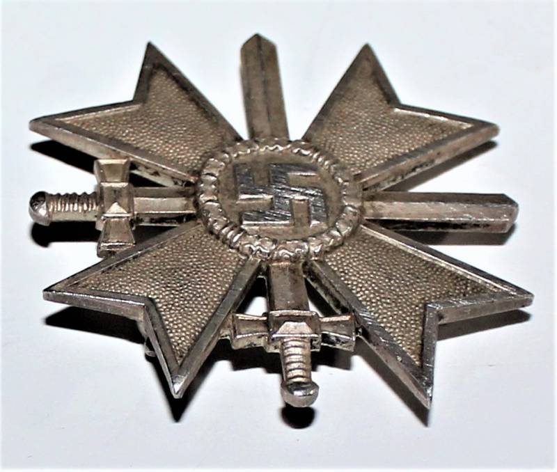 Bellissima Croce Meriti di Guerra con Spade di 1°classe, condizioni ottime quasi pari al nuovo, leggerissima patina del tempo, marcata con numero codice fabbricante. Originale 100% WWII periodo.