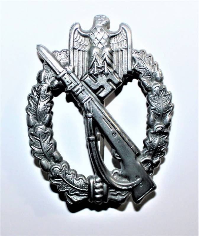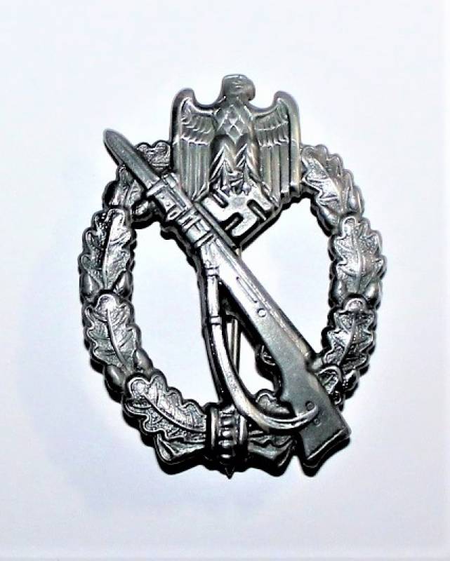 Bellissimo distintivo assaltatore Fanteria in ottime condizioni pari al nuovo ottimi dettagli e ottima argentatura, del tipo nato in lamiera stampata. Originale 100% WWII periodo.