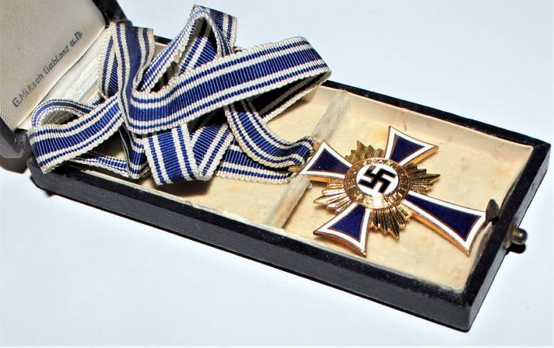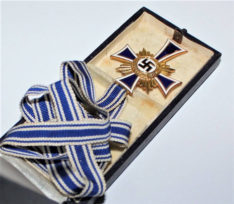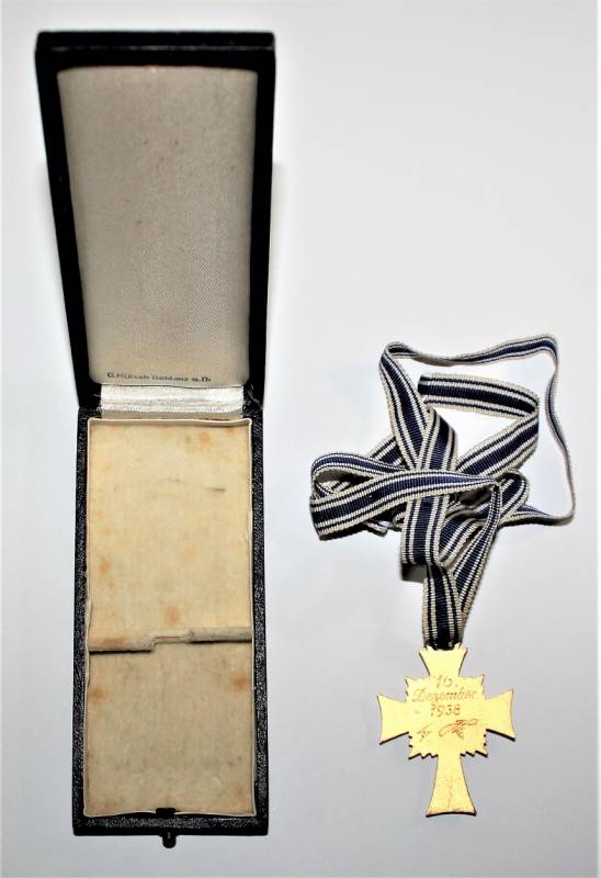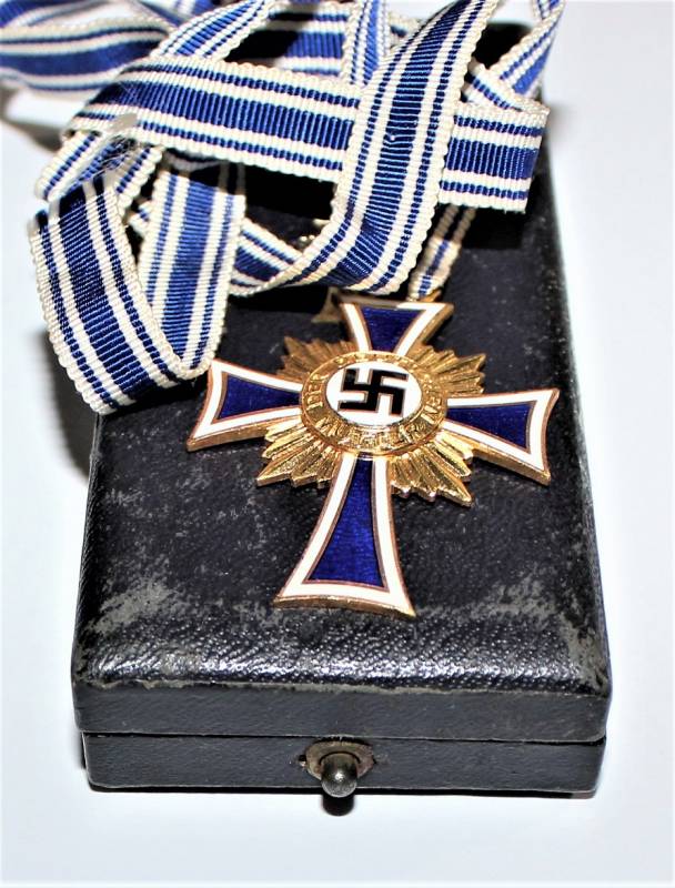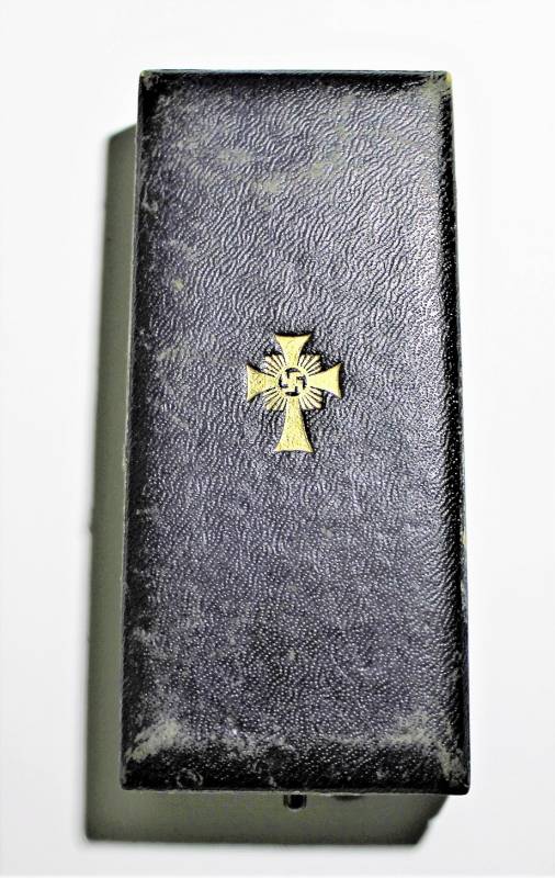 Croce delle Madri Tedesche classe in oro completa della sua scatola, condizioni stupende quasi pari al nuovo, scatola marcata con nome del fabbricante. Originale 100% WWII periodo.