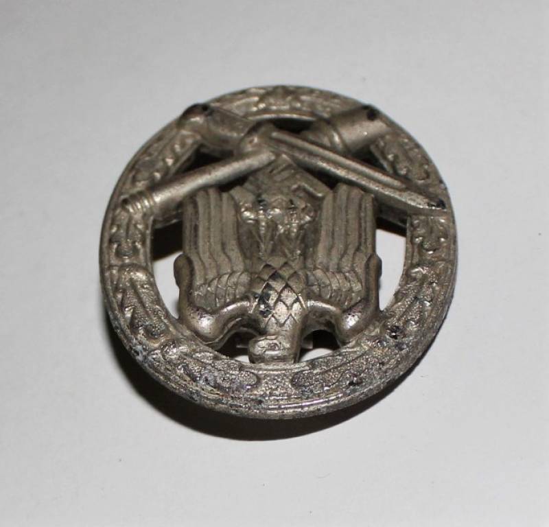 Distintivo generico dŽassaltatore, in ottime condizioni, argentatura al 90%, leggera patina del tempo e dellŽuso, marcato con codice fabbricante. Originale 100% WWII periodo.