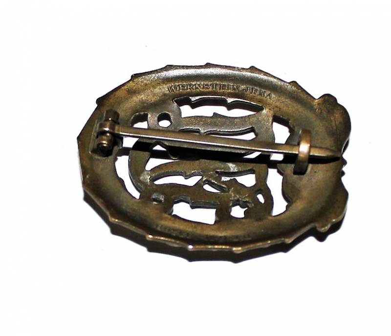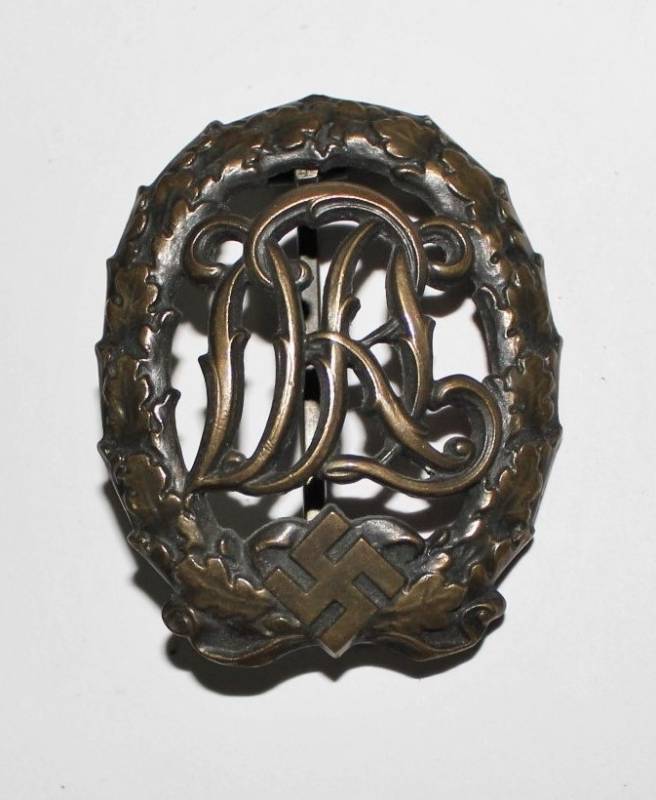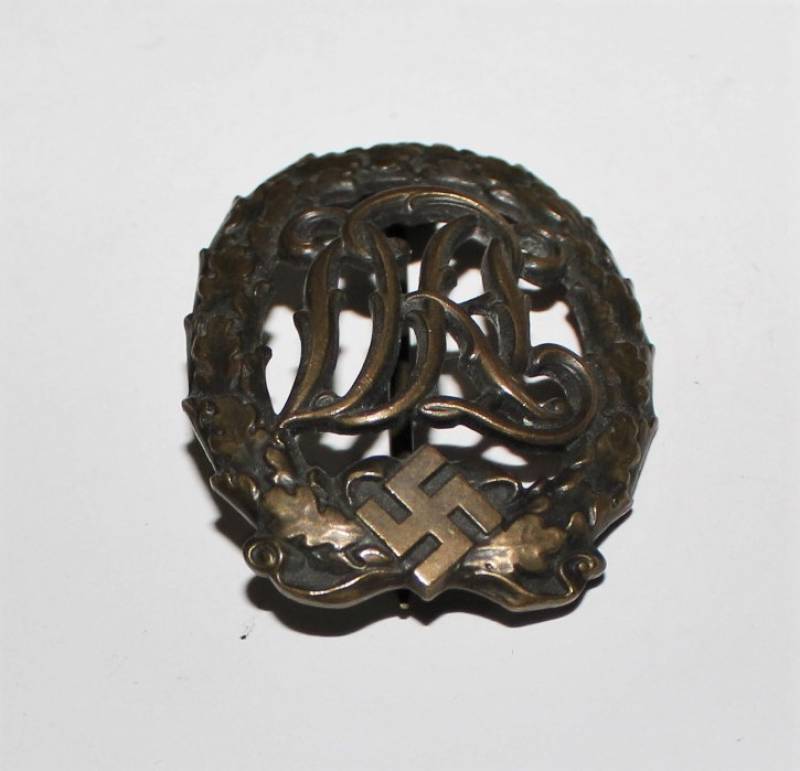 Distintivo sportivo DRL in bronzo, in belle condizioni, con leggera patina del tempo e dellŽuso, marcato sul retro. Originale 100% WWII periodo.