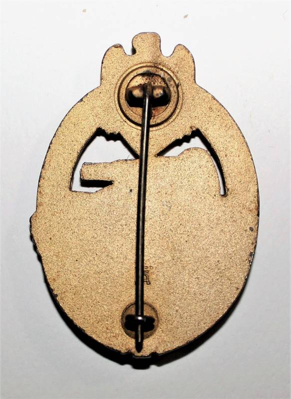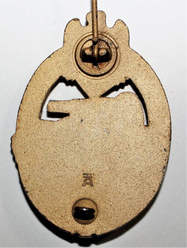 Bellissimo distintivo dŽassalto della WH Panzer grado in oro in ottime condizioni, leggerissima patina del tempo, non restaurato o riparato, marcato sul retro con sigla del fabbricante.