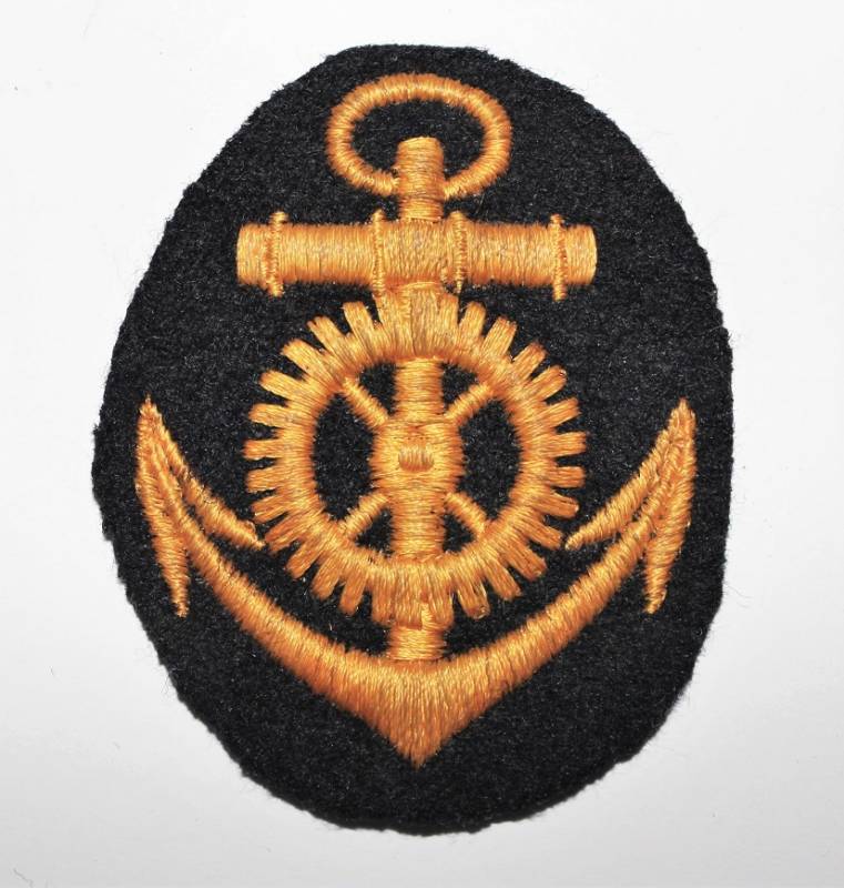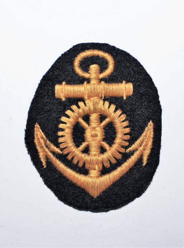 Distintivo della KM specialista motorista di macchina nato ricamato in filo di cotone color oro su fondo di lana blu, condizioni ottime. Originale 100% WWII periodo.