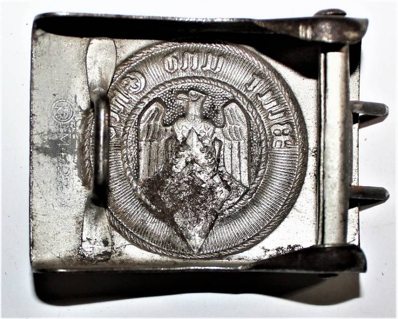 Fibbia in acciaio da truppa della HITLERJUGEND denazificata, (la svastica è stata rimossa) condizioni buone, marcata RZM M4/27. Originale 100% WWII periodo.