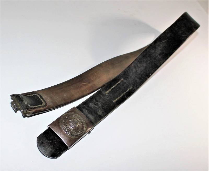 Cinturone e fibbia da Truppa della WH tutto in buone condizioni, fibbia in acciaio completa di passante in cuoio sul quale s´intravede la marcatura del nome fabbricante e della data, cinturone in cuoio nero in ottime condizioni lunghezza circa cm 105 non lesionato e con cuciture perfette.