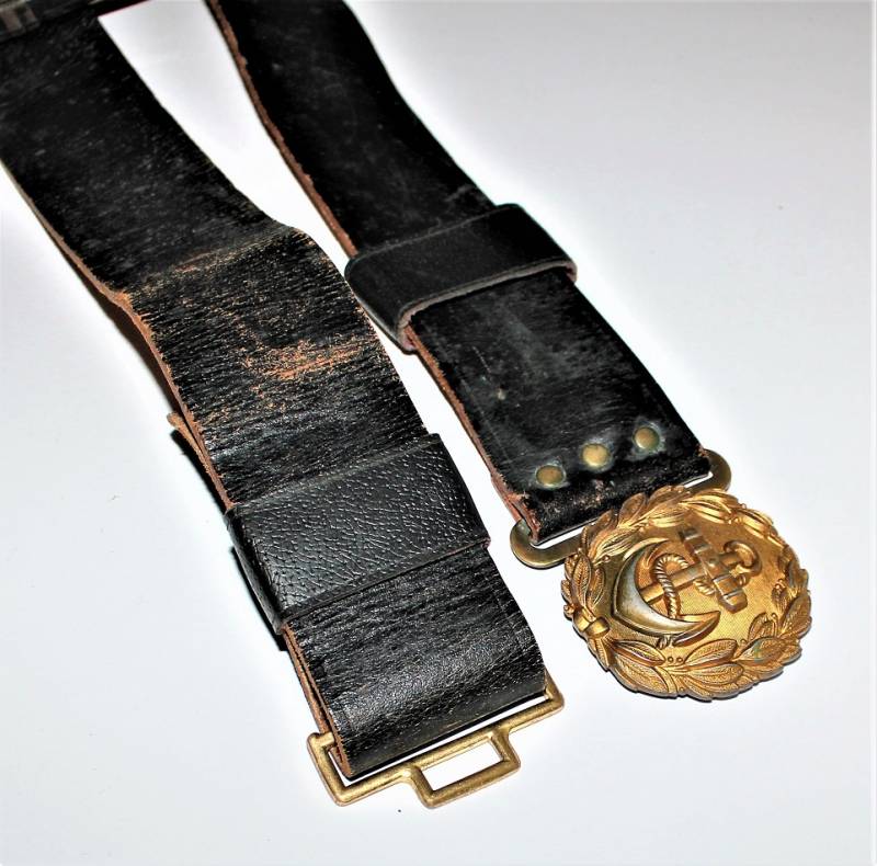 Cinturone e fibbia da Ufficiale Superiore della KRIEGSMARINE in ottime condizioni e completo in ogni sua parte solo con leggera patina del tempo e dell´uso, la pelle č in ottime condizioni molto morbida e completa di passanti, la fibbia dorata č marcata con i codici del fabbricante.