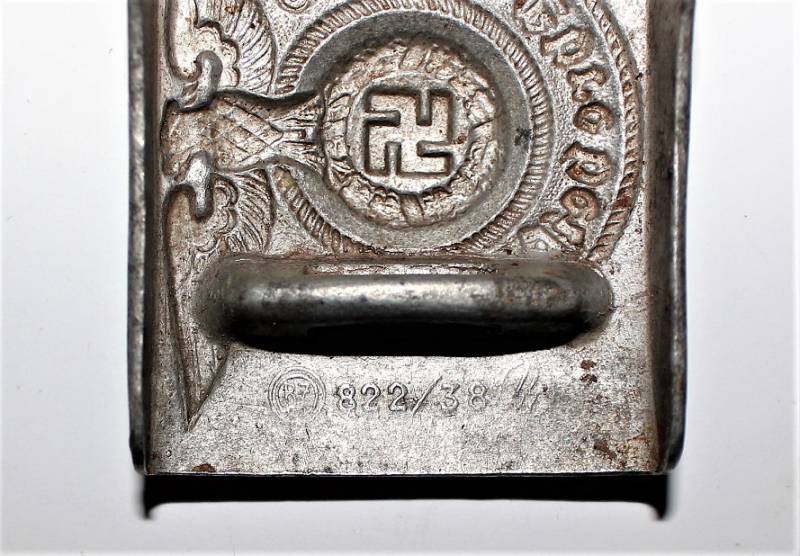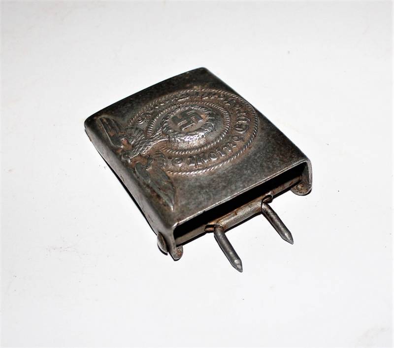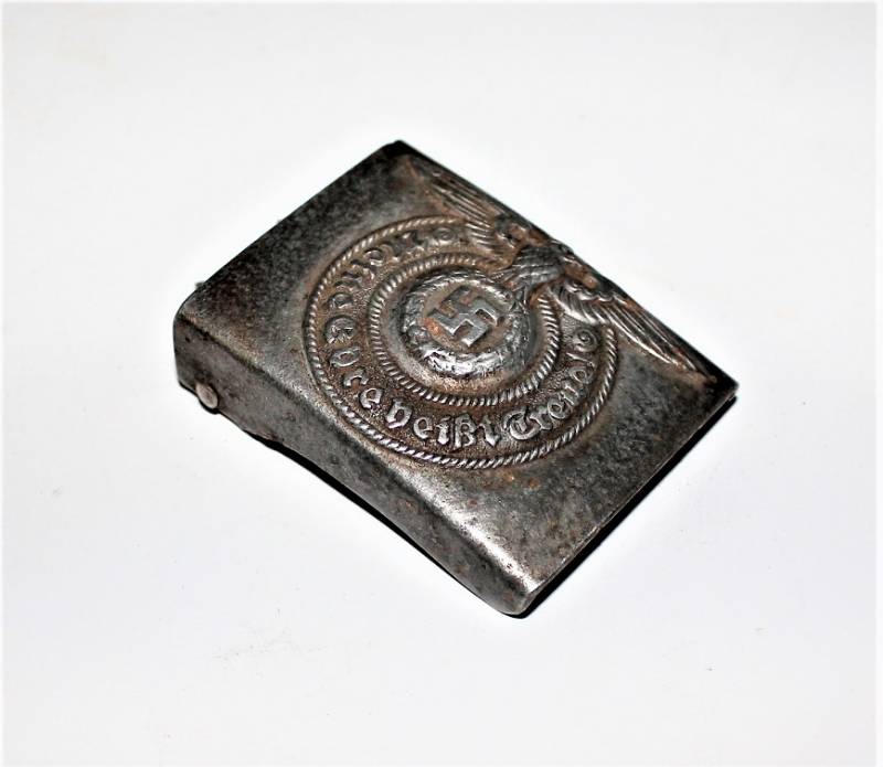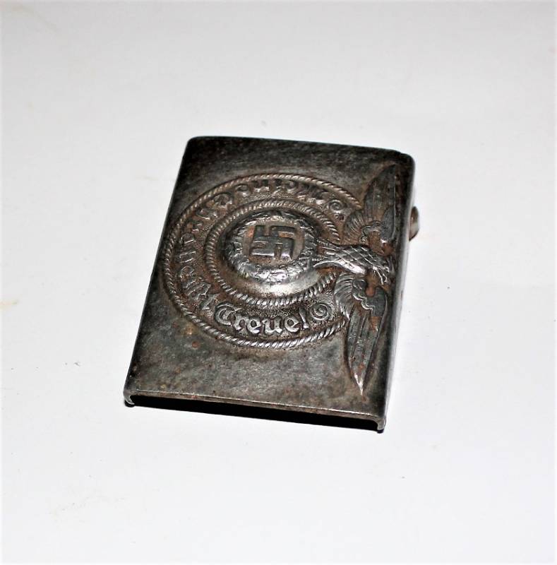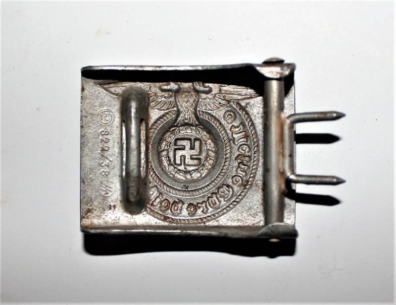 Fibbia da truppa della W.SS modello in alluminio, condizioni belle, patinata dal tempo e dallŽuso, marcata con codici di accettazione RZM 822/38 SS. Originale 100% WWII periodo.
