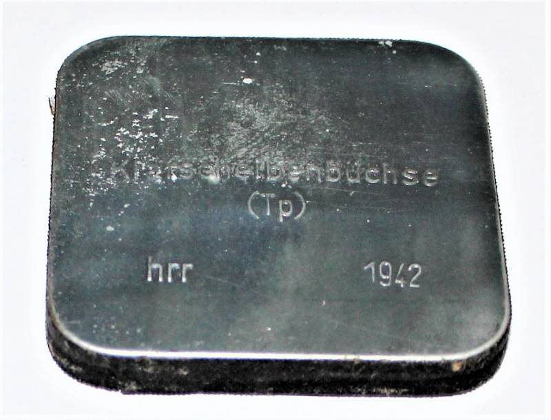Contenitore M31 in metallo lenti di ricambio per maschera anti-gas da paracadutista in condizioni perfette pari al nuovo, contenitore in metallo ancora sigillato, marcato con codice fabbricante e data 1942. Originale 100% WWII periodo.
