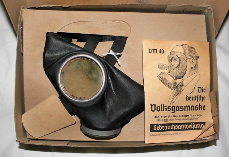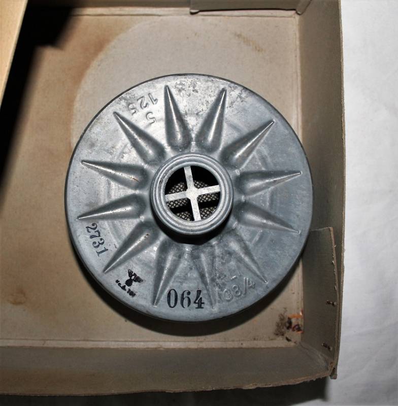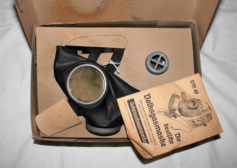 Maschera antigas della protezione civile Luftschutz, nuova di magazzino, completa di tutto, nella sua scatola originale di cartone. Originale 100% WWII periodo.