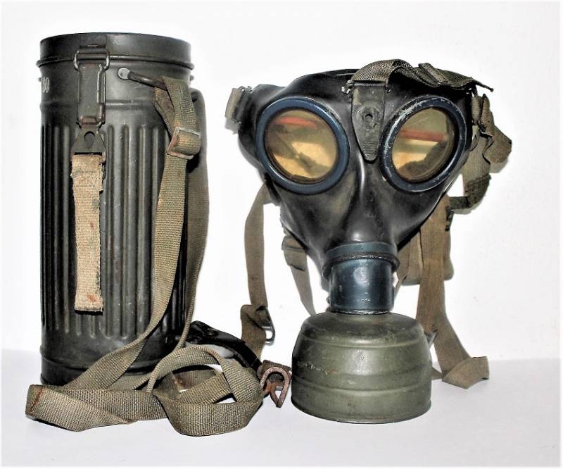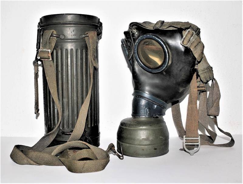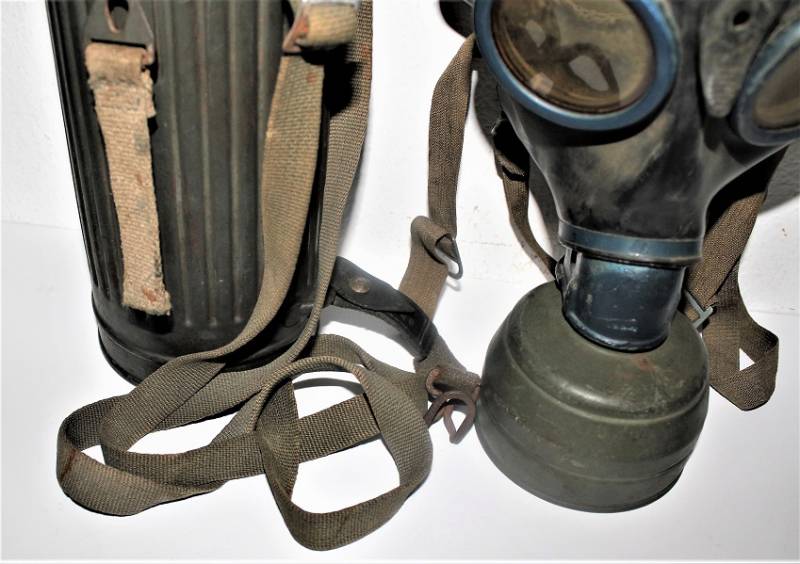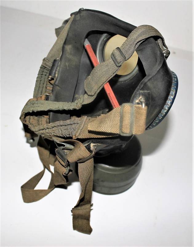 Maschera antigas nata in colorazione verde scuro al 90%, in ottime condizioni, con leggeri segni del tempo e dellŽuso, completa in tutte le sue parti, compreso cinghiaggio in canapa e lenti di ricambio. Marcata internamente con sigla fabbricante e data 1944. Originale 100% WWII periodo.