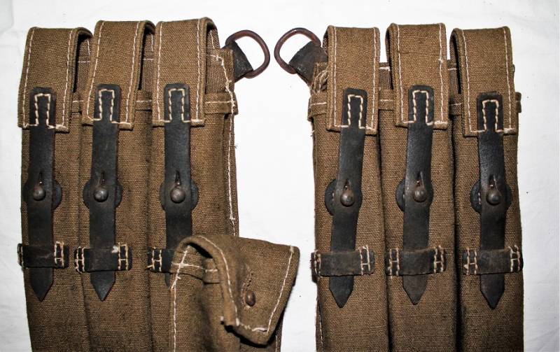 Coppia di porta caricatori, per MP38-40, ottima riproduzione nata con tela e pelle originali dŽepoca.