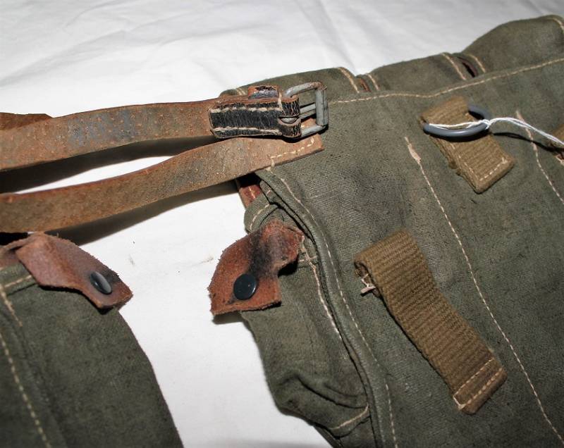Coppia di porta caricatori per fucile MP44-STG44 in perfette condizioni, nati con tutto materiale, tela e cuoio originale dŽepoca, perfettamente identici, indistinguibili dagli originali.