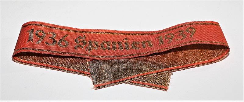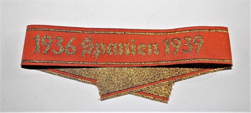 Fascetta da braccio ricamata in filo dorato di canottiglia Guerra di Spagna 1936-39.