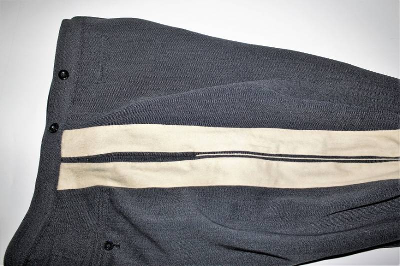 Stupendi ed eleganti pantaloni a sbuffo da Generale della LW nati in gabardina in diagonale in colore blu, con bande laterali di pannetto di lana biancha tipico dei Generali, condizioni perfette, quasi pari al nuovo, completi in ogni sua parte, senza buchi, strappi o riparazioni. Taglia circa 48. Originali 100% WWII periodo.