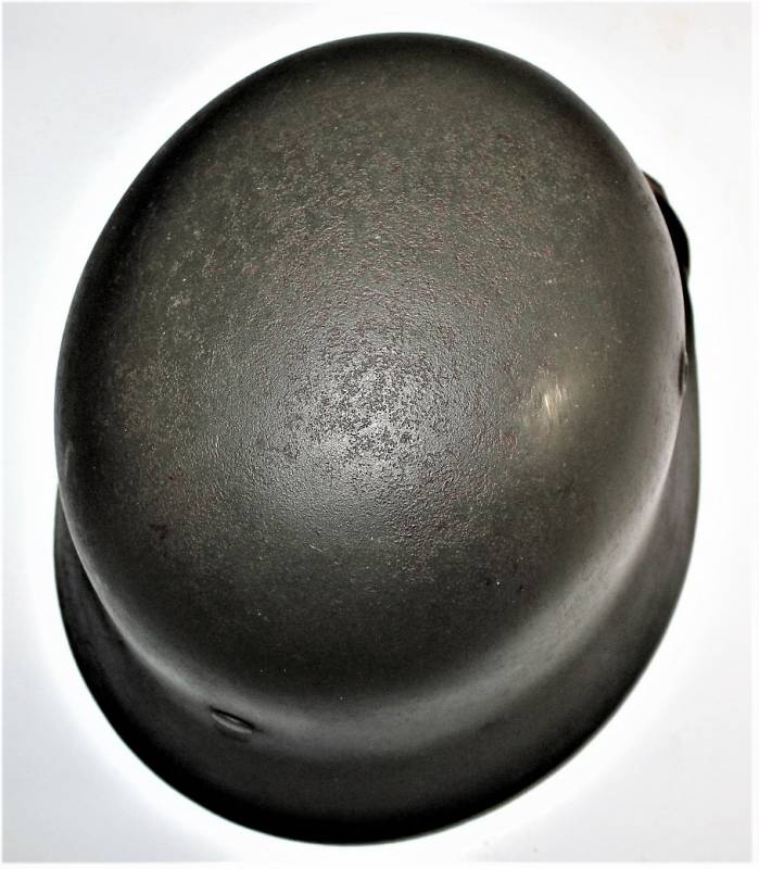 Elmetto M40 monodekal WH in ottime condizioni, non restaurato o riparato, completo in ogni sua parte, con interno e sottogola mai smontati, il tutto con leggera patina del tempo e dellŽuso, verniciatura verde feldgrau rugosa al 85%, decalcomania patinata anchŽessa allŽ80%, pelle del liner in ottime condizioni ancora morbida e non lesionata, marcato sul ferro con numero di lotto e sigla del fabbricante Q64, sottogola marcato con nome del fabbricante e data 1940. Sulla calotta interna dellŽelmo si intravede il timbro ovale del fabbricante. Taglia pelle 56. Originale 100% WWII periodo.