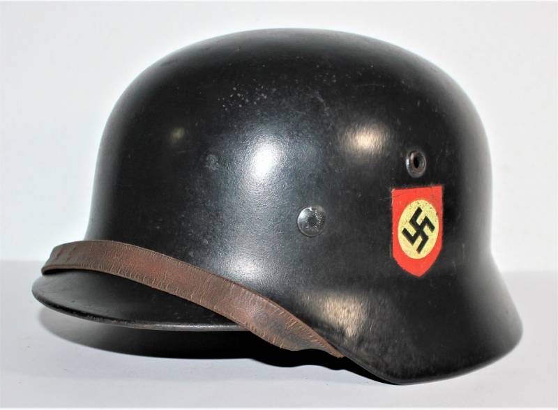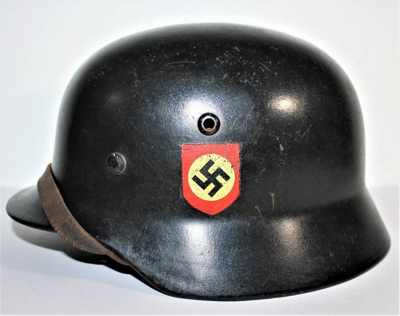 Elmetto mod.M35 Algemine SS bidekal, condizioni ottime con leggera patina del tempo e dellŽuso, completo in ogni sua parte, non restaurato o riparato, liner e sottogola mai rimossi, la pelle del liner è morbida e non danneggiata, sottogola in buone condizioni con nome del fabbricante e data 1939, la colorazione dellŽelmo è nera opaca al 95%, la decalcomania delle rune allŽ95% e la decalcomania del partito al 95% circa.
