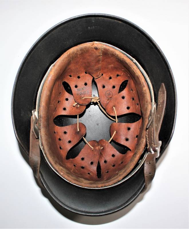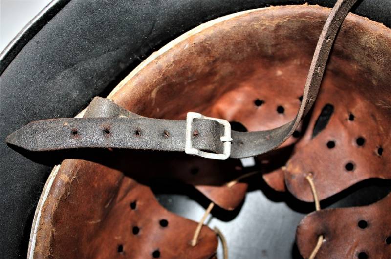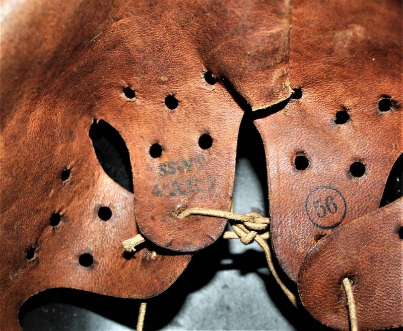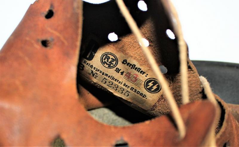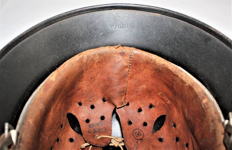 LŽelmo è marcato sul ferro con numero di lotto e sigla del fabbricante Q64, pelle marcata con timbri dŽaccettazione SS e taglia 56. Originale 100% WWII periodo. ULTERIORI FOTO SU RICHIESTA!!!
