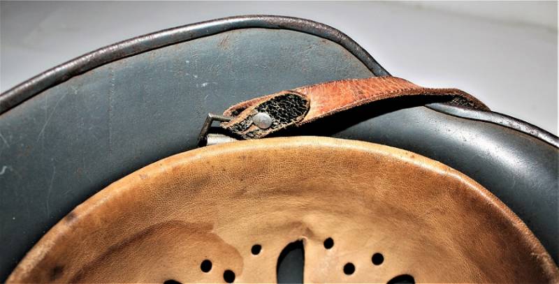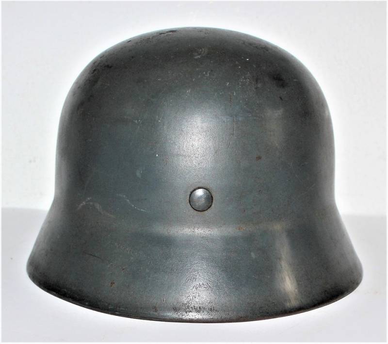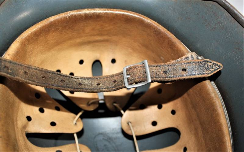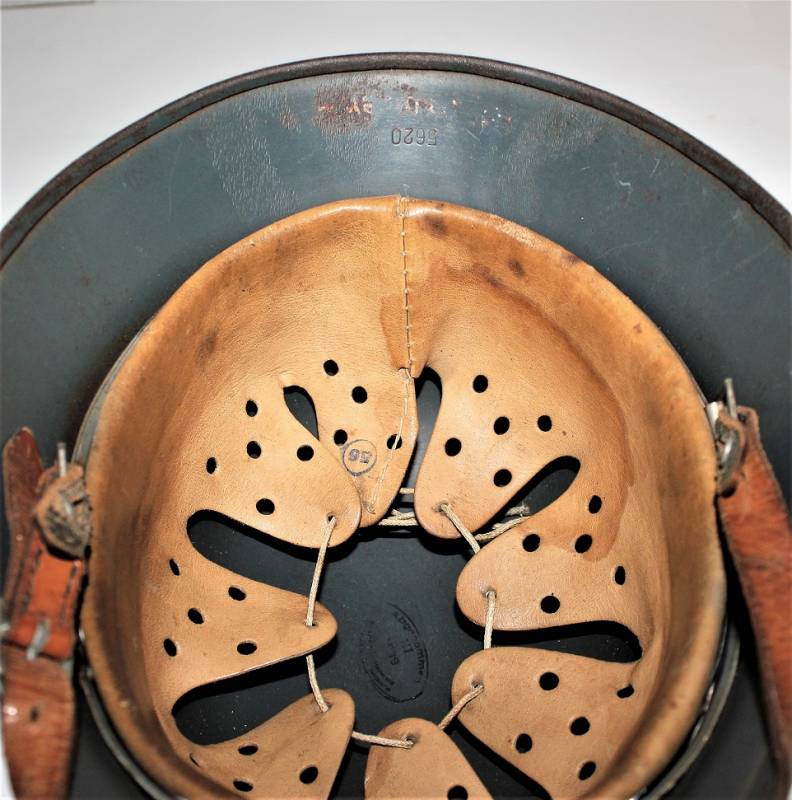Bellissimo elmetto M35 della LW bidekal nato in colorazione blu Luftwaffe in ottime condizioni, non restaurato o riparato e mai smontato, completo in ogni sua parte, solo leggera patina del tempo e dellŽuso, colore al 90/95%, decalcomanie patinate anchŽesse al 95%, pelle in ottime condizioni non lesionata, marcato sul ferro con codice fabbricante NS64 e numero di lotto, pelle taglia 56, sottogola marcato con logo del fabbricante e data 1939. AllŽinterno dellŽelmo sulla calotta ben visibile timbro ovale dŽaccettazione datato 1939, sŽintravede inoltre il nome del soldato scritto a vernice sulla parte posteriore del ferro. Originale 100% WWII periodo.