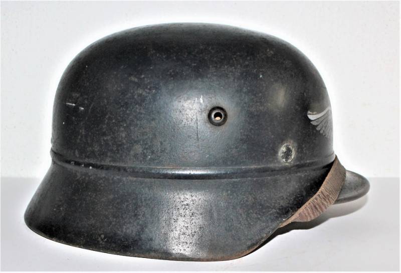 Elmetto M35 Luftschutz in buone condizioni completo in ogni sua parte, mai smontato o riparato, il tutto con leggera patina del tempo e dellŽuso, nato in verniciatura blu notte al 90%, dekal Luftschutz in perfette condizioni quasi al 100%, sottogola mai smontato marcato con sigla del fabbricante e data 1942, pelle del liner buona ma ustata, leggermente secca, taglia 58, ferro marcato con codice fabbricante Q66 e numero di lotto. Originale 100% WWII periodo.