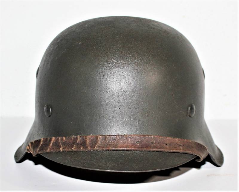 Stupendo elmetto M42 monodekal in condizioni perfette quasi pari al nuovo, usato pochissimo solo con leggera patina del tempo e dellŽuso, completo in ogni sua parte, interno e sottogola mai smontati, nato in colorazione feldgrau scuro rugoso al 98%, decalcomania quasi al 100% solo leggermente patinata del tempo, ferro marcato con codice fabbricante taglia 66, taglia pelle 58, sottogola marcato con codice fabbricante e data 1943.