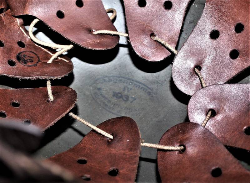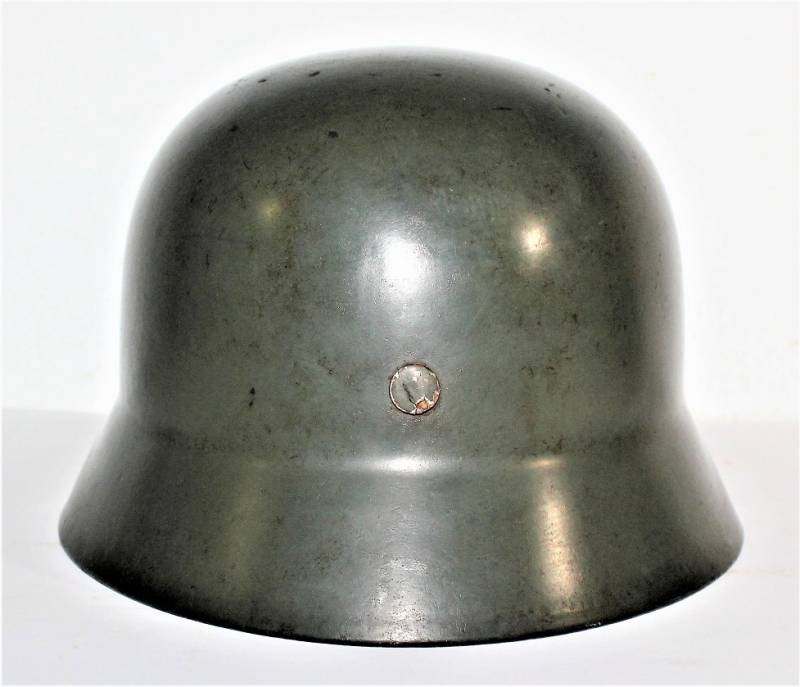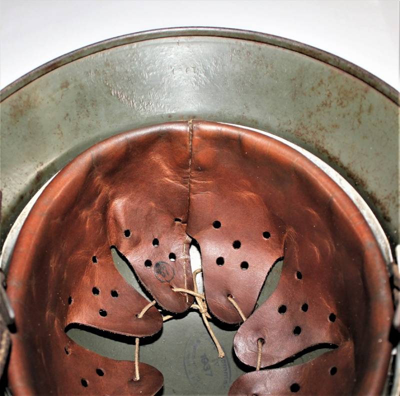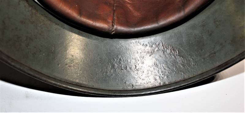 AllŽinterno dellŽelmo sulla calotta ben visibile timbro ovale dŽaccettazione datato 1937, ferro marcato con codice fabbricante Q64 e numero di lotto. Originale 100% WWII periodo.