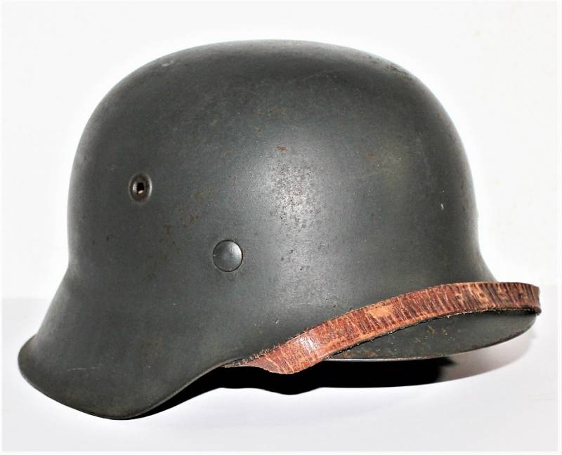 Elmetto M42 monodekal in ottime e perfette condizioni, solo con leggera patina del tempo e dellŽuso, completo in ogni sua parte, interno e sottogola mai smontati, non retaurato o riparato, nato in colorazione feldgrau scura rugosa anti-riflesso quasi al 100%, decalcomania al 95% leggermente patinata, ferro marcato con codice fabbricante taglia 62 e numero di lotto, taglia pelle 55, sottogola marcato con codice fabbricante e data 1943.