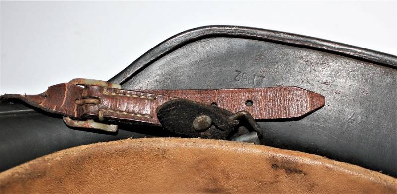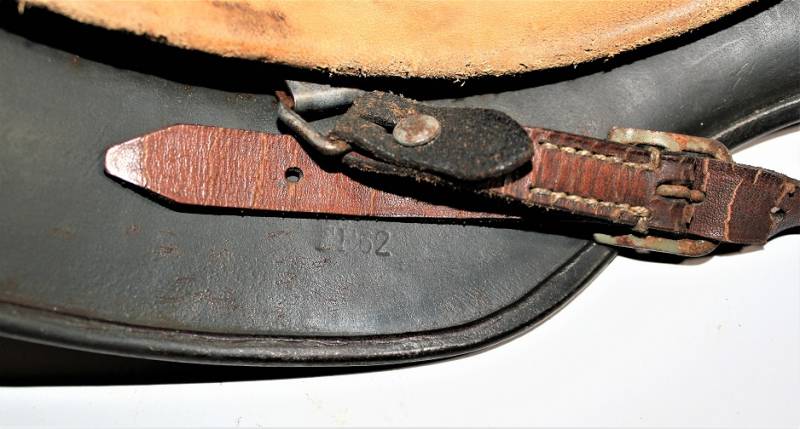 AllŽinterno dellŽelmo sulla calotta è ben visibile il timbro ovale dŽaccettazione con data 1940, ferro marcato con codice fabbricante ET62 e numero di lotto, taglia della pelle 55. Originale 100% WWII periodo.
