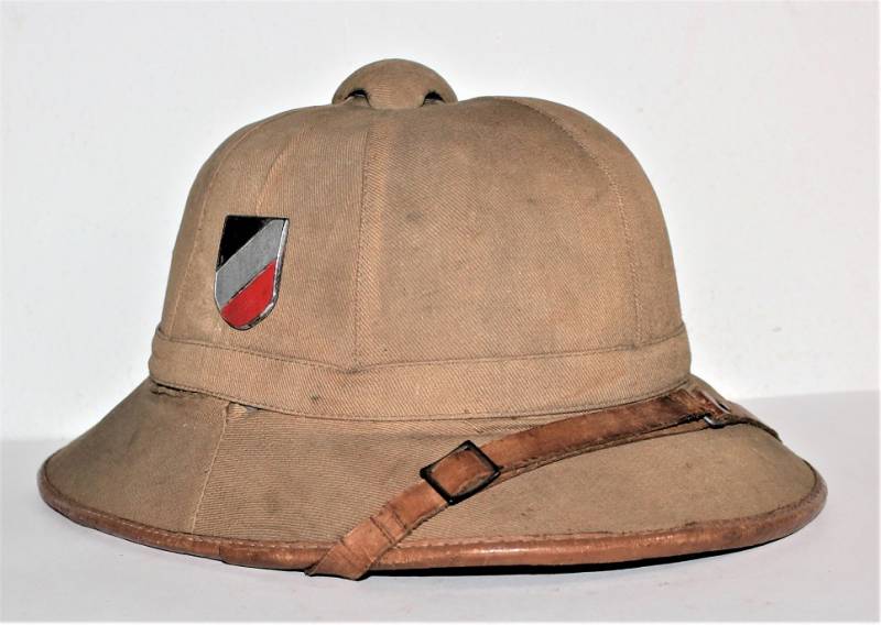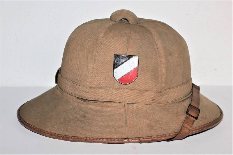 Casco coloniale della LW in buone condizioni, non restaurato o riparato, solo con patina del tempo e dellŽuso e completo in ogni sua parte, interno, sottogola e fregi mai smontati, marcato sotto il parasudore con RBN n.., data 1941 e taglia 56, fregi belli mai smontati, uno dei tre fermi dello scudetto dei colori nazionali è rotto. Originale 100% WWII periodo.