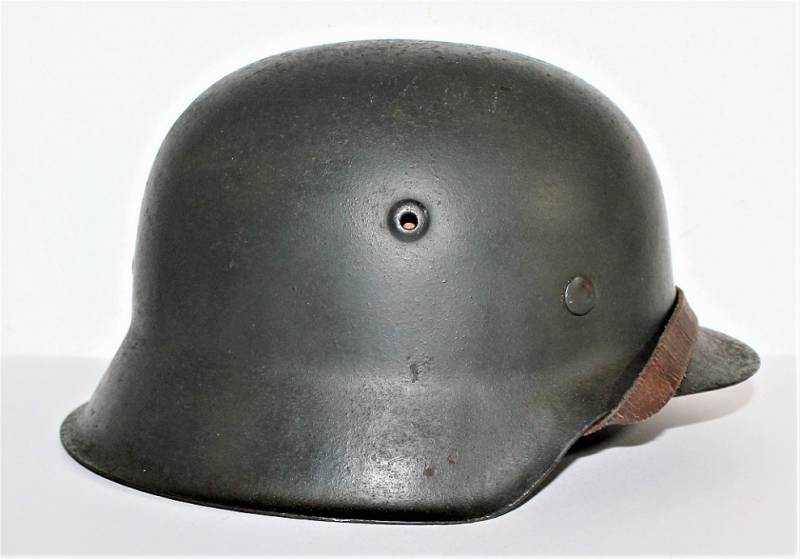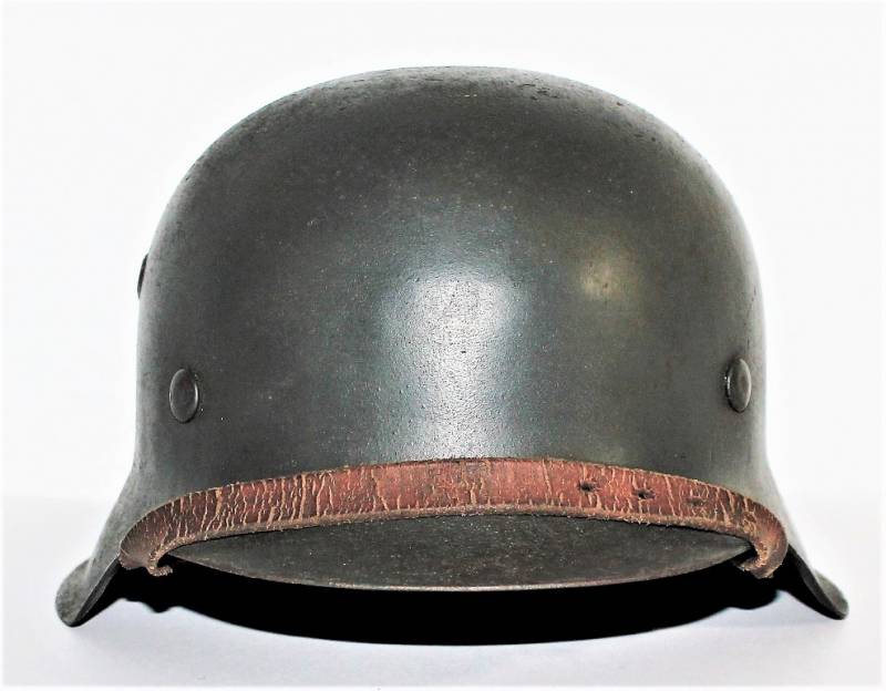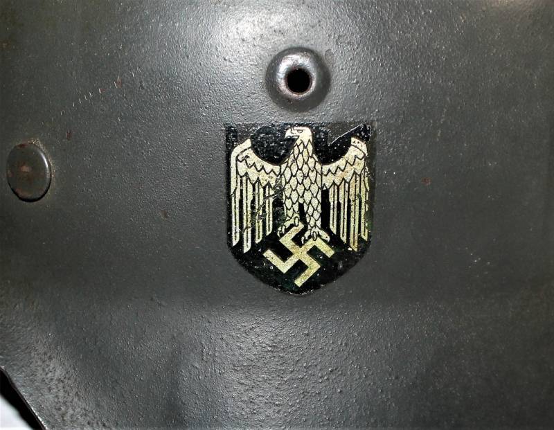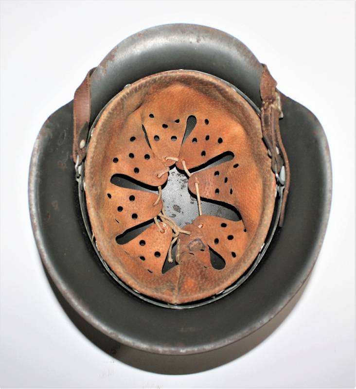 Elmetto M42 monodekal in buone condizioni, con patina del tempo e dellŽuso, completo in ogni sua parte, interno e sottogola mai smontati, nato in colorazione feldgrau scura rugosa anti-riflesso al 90%, decalcomania allŽ85% leggermente patinata del tempo, ferro marcato con codice fabbricante e numero di lotto, taglia pelle 55, sottogola marcato con nome del fabbricante e data 1941. Originale 100% WWII periodo.
