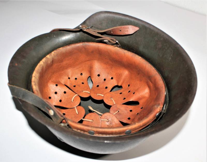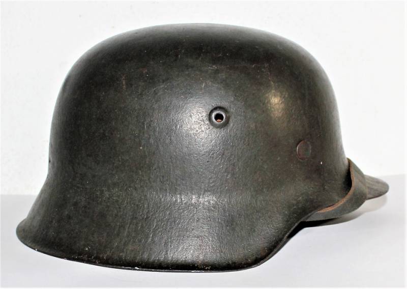 Elmetto M42 monodekal WH in ottime condizioni, con patina del tempo e dellŽuso, completo in ogni sua parte, non restaurato, interno e sottogola mai smontati, nato in colorazione feldgrau scura allŽ85-90%, decalcomania allŽ80-85% patinata del tempo e dallŽuso, ferro marcato con codice fabbricante KKP66 e numero di lotto, taglia pelle 58-59 in buone condizioni e non lesionata solo patinata dallŽuso, taglia ferro 66, sottogola marcato con nome del fabbricante e data 1942.