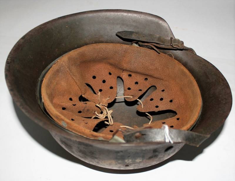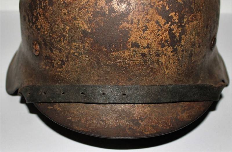 Elmetto mod.42 W.SS volontari stranieri (rune a sinistra), in verniciatura mimetica camo giallo-marrone vissuto ma in buone condizioni, con patina del tempo e dellŽuso, mimetismo tipico fronte del sud al 60% dekal di 1°tipo al 50%. Interno e sottogola mai smontati con pelli ancora molto buone, marcato con numero di lotto, sigla del fabbricante taglia del ferro 68, taglia pelle 60-61. Originale 100%. WWII periodo. Ulteriori foto su richiesta.