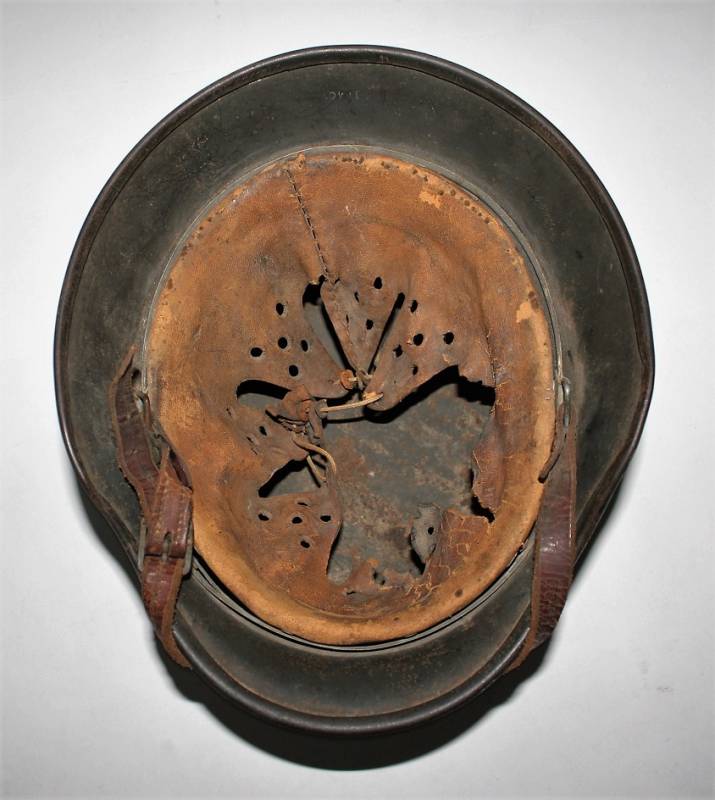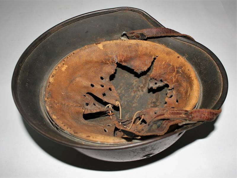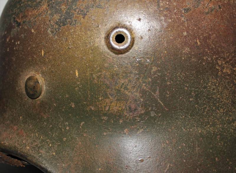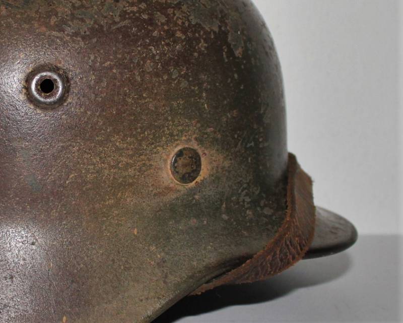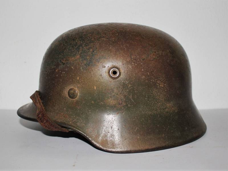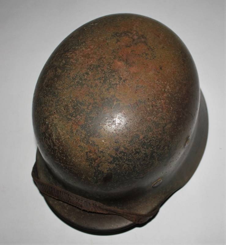 Stupendo elmetto mimetico mod.M40 della WH in ottime condizioni completo in ogni sua parte mai smontato, mimetico in 3 colori, giallo, verde e marrone, tipico mimetismo nord dŽeuropa, il mimetismo si presenta allŽ80%, sotto la vernice si delinea la silhouette della decalcomania WH. Interno e sottogola mai smontati, pelle del liner molto usurata e lesionata nella parte interiore destra. Ferro marcato con numero di lotto, sigla dl fabbricante, taglia ferro 64, taglia pelle 56-57. Originale 100%. WWII periodo.
